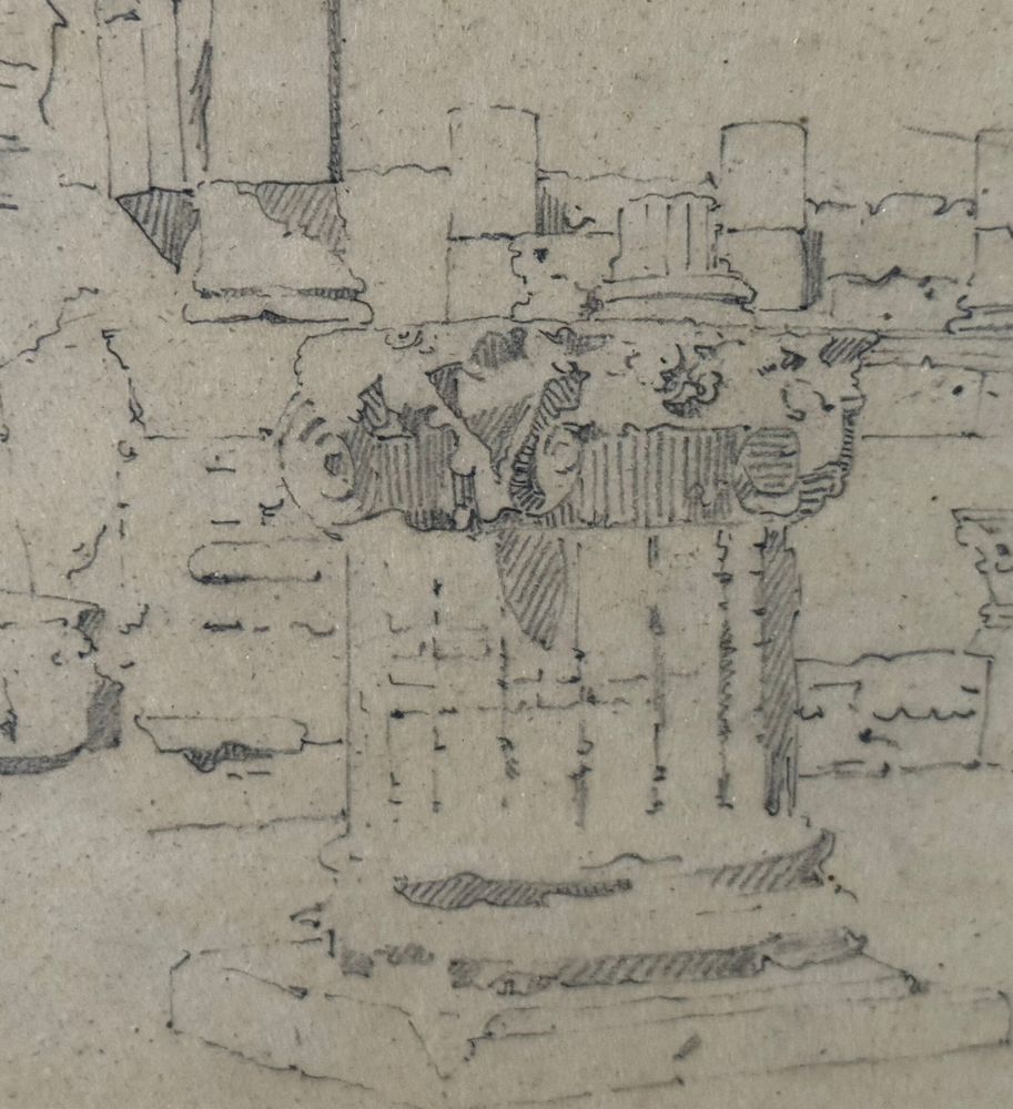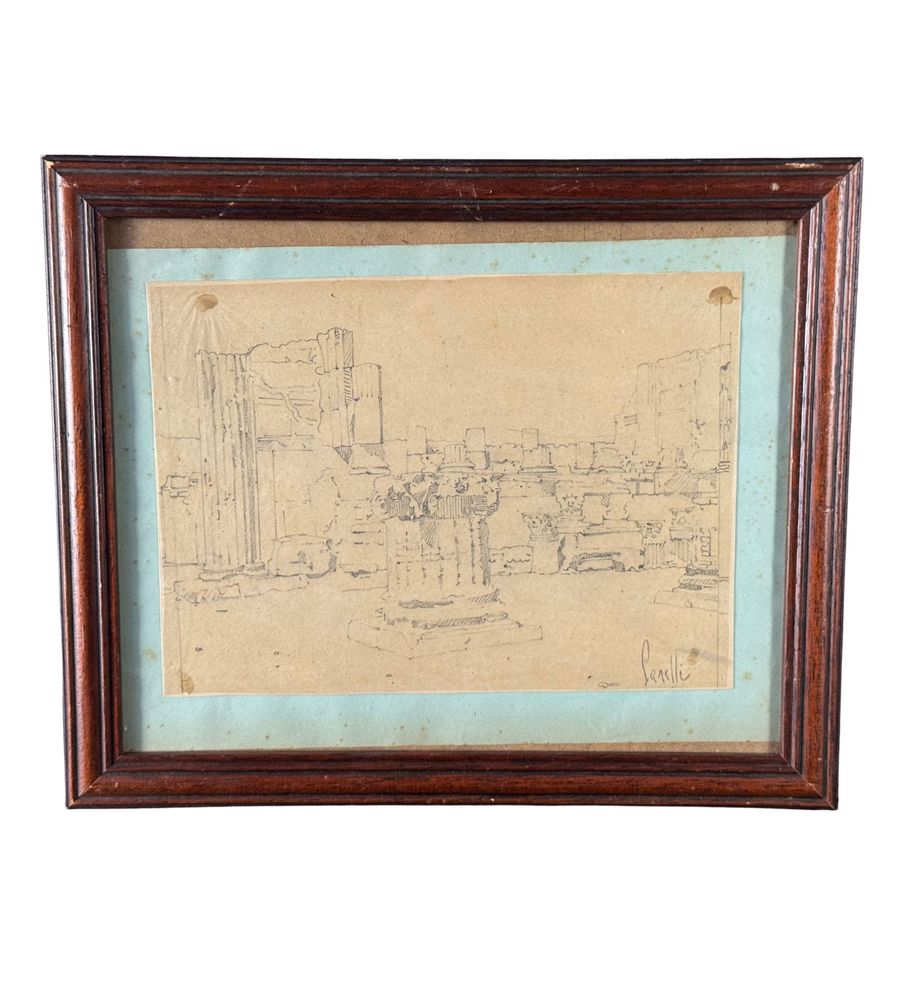 Disegno china su carta, periodo XIX secolo, scuola Italiana accademico, raffigurante Architettura. Dimensioni compreso cornice: 34x28 cm. Dimensioni interno cornice: 25x18 cm. Firmato in basso a destra artista non identificato. Opera in buone condizioni con lievi segni di vissuto come da foto allegate.