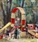 Dipinto olio su cartoncino, periodo XX secolo, raffigurante Personaggi al parco giochi. Dimensioni compreso cornice: 55x45 cm. Dimensioni interno cornice: 41x31 cm. Da artista anonimo. Opera in buone condizioni.