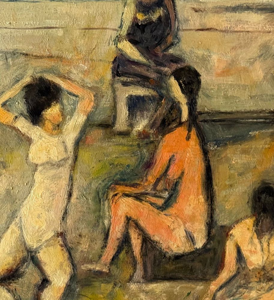 Dipinto olio su pannello, scuola Italiana, periodo XX secolo, raffigurante Bagnanti. Dimensioni compreso cornice: 61x46 cm. Dimensioni interno cornice: 50x35 cm. Da artista anonimo. Opera in buone condizioni con lievi segni di vissuto come da foto allegate.