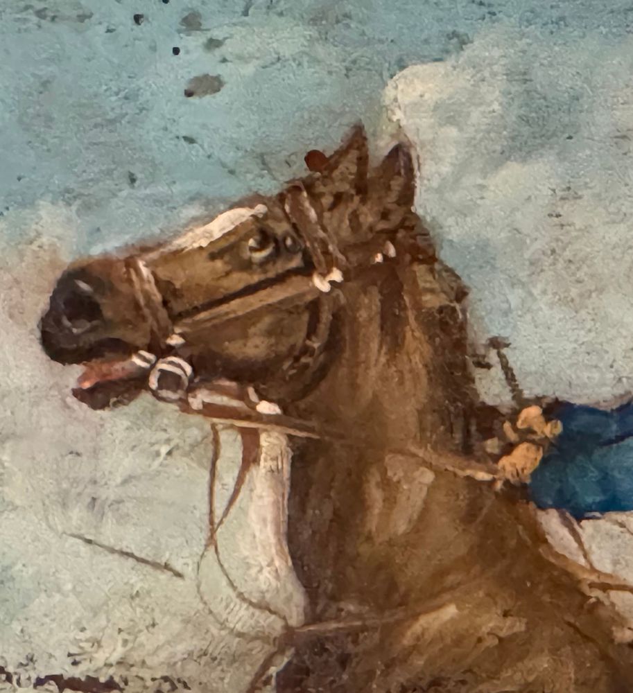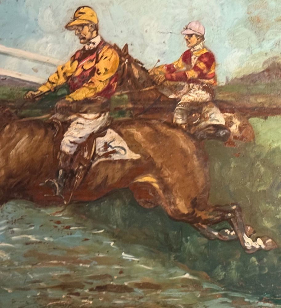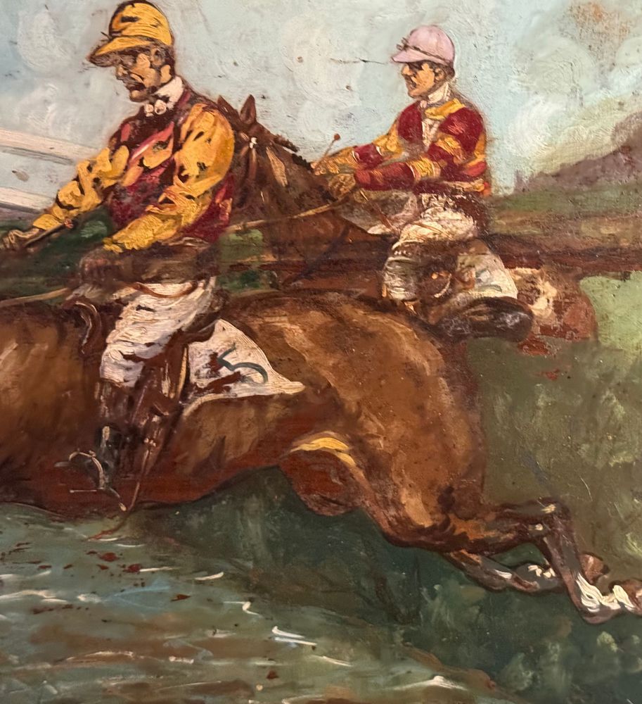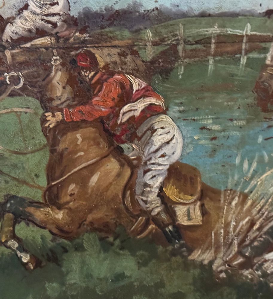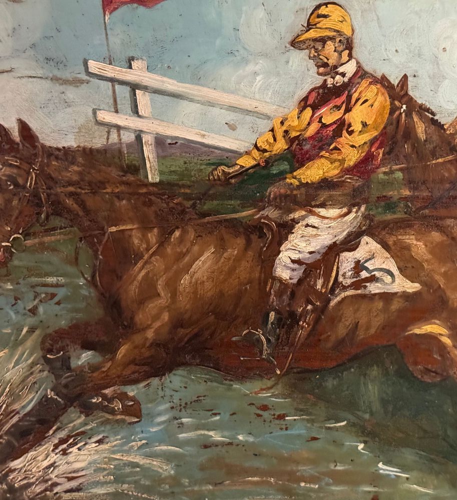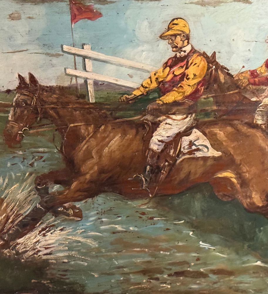 Dipinto olio su tavola, periodo XX secolo scuola italiana, raffigurante Scena Ippica. Dimensioni: 67x31 cm. Da artista anonimo. Opera in discrete condizioni come da foto allegate.