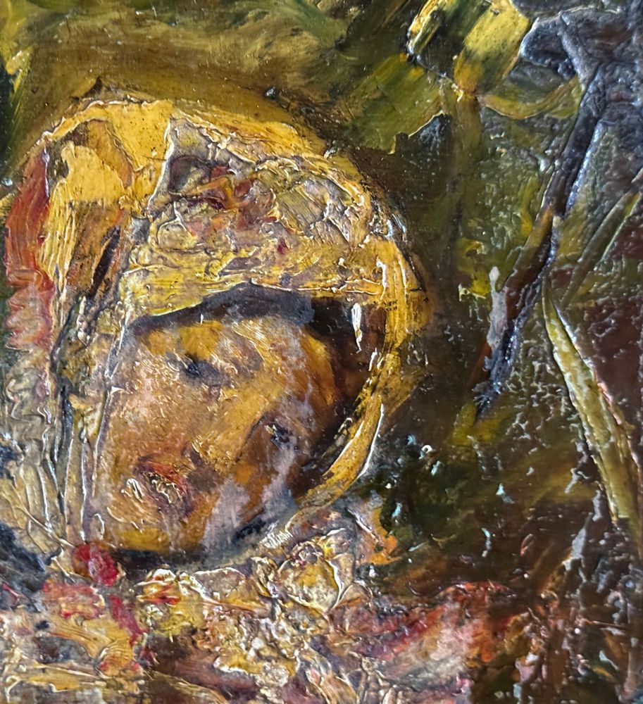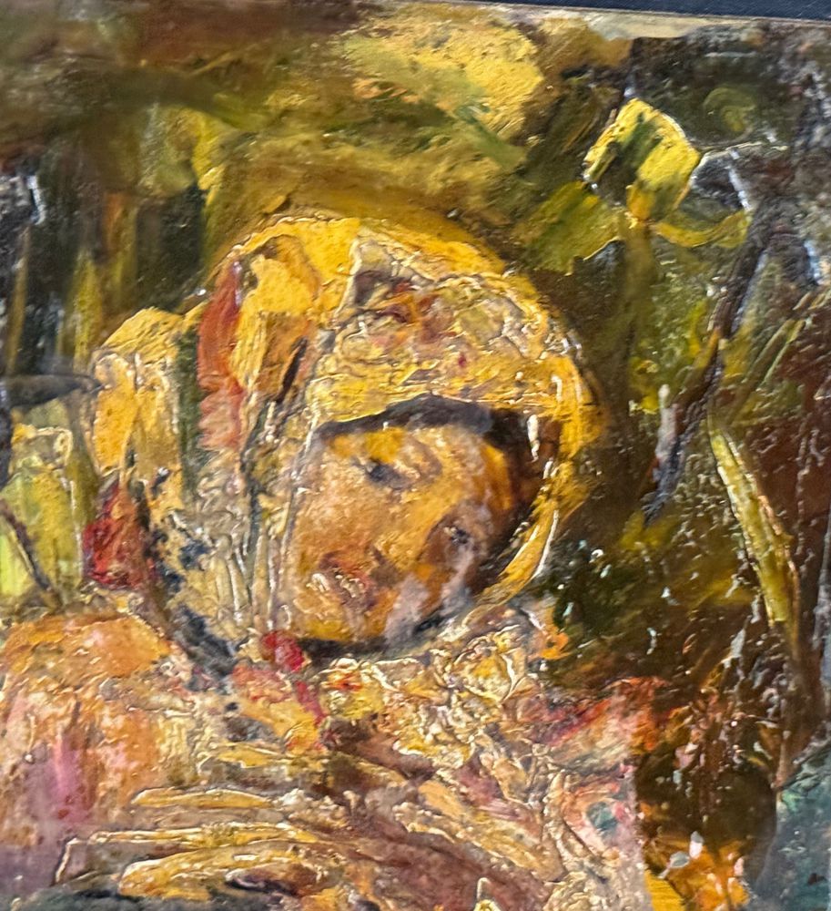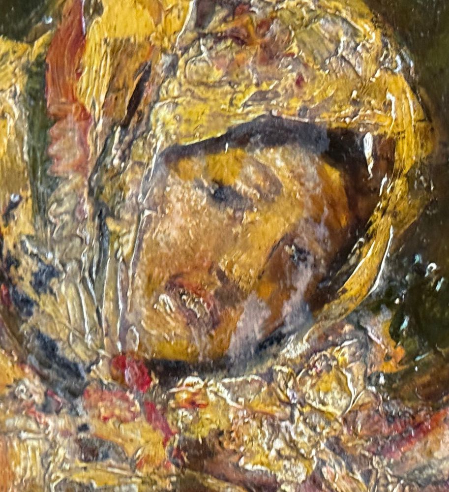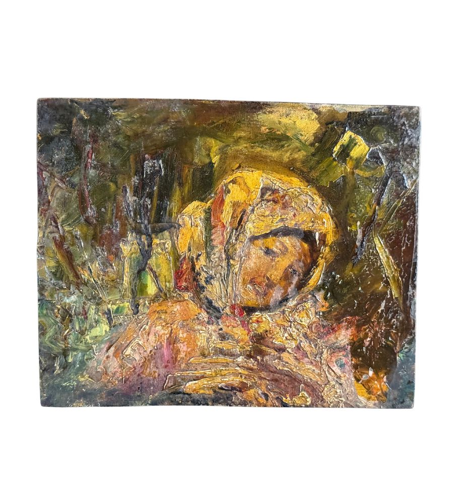 Dipinto olio su tavola, periodo XX secolo, scuola Italiana, raffigurante Ritratto di bambina con copricapo. Dimensioni : 19,5x24 cm. Da artista anonimo. Opera in buone condizioni.