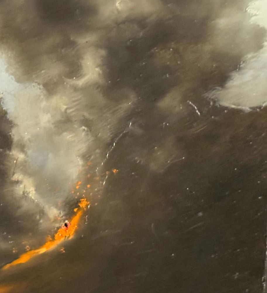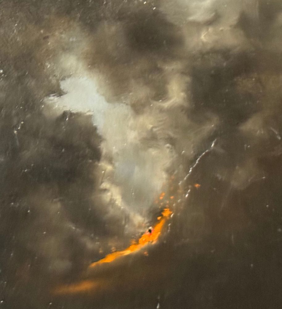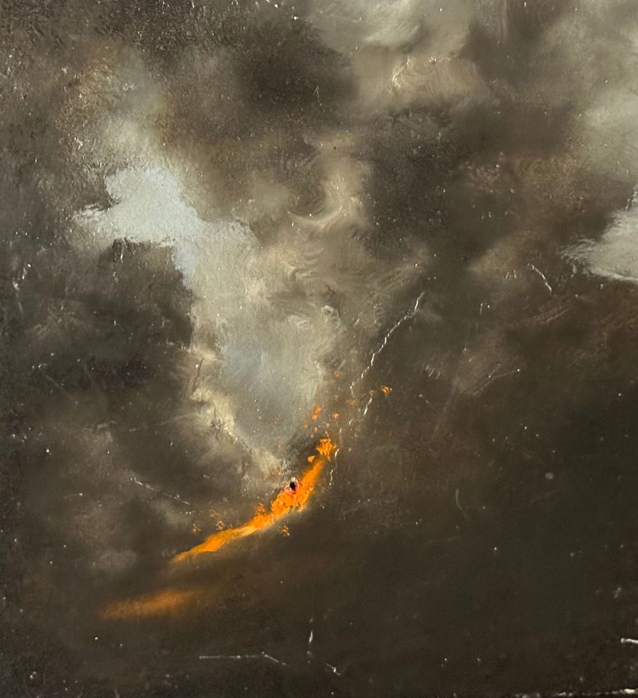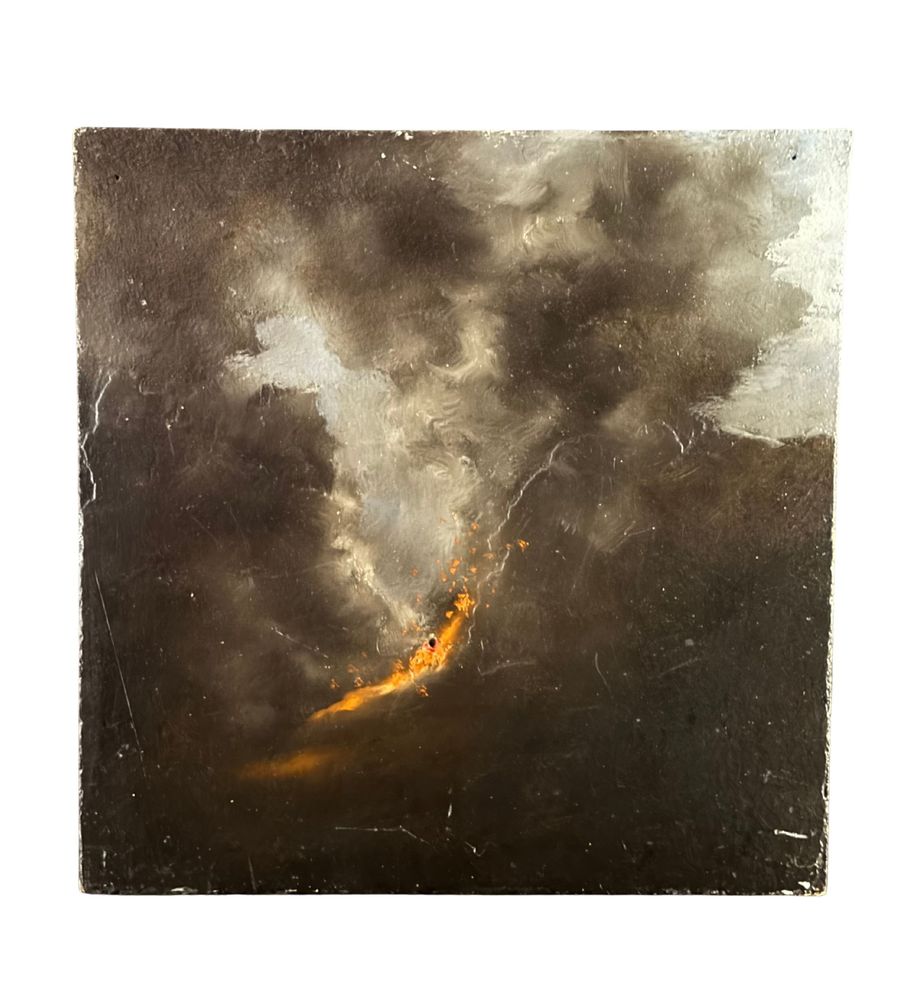 Dipinto olio su tavola, periodo XX secolo, scuola Italiana, raffigurante Eruzione riavvicinata di un Vulcano. Dimensioni: 27x27 cm. Da artista anonimo. Opera in buone condizioni.