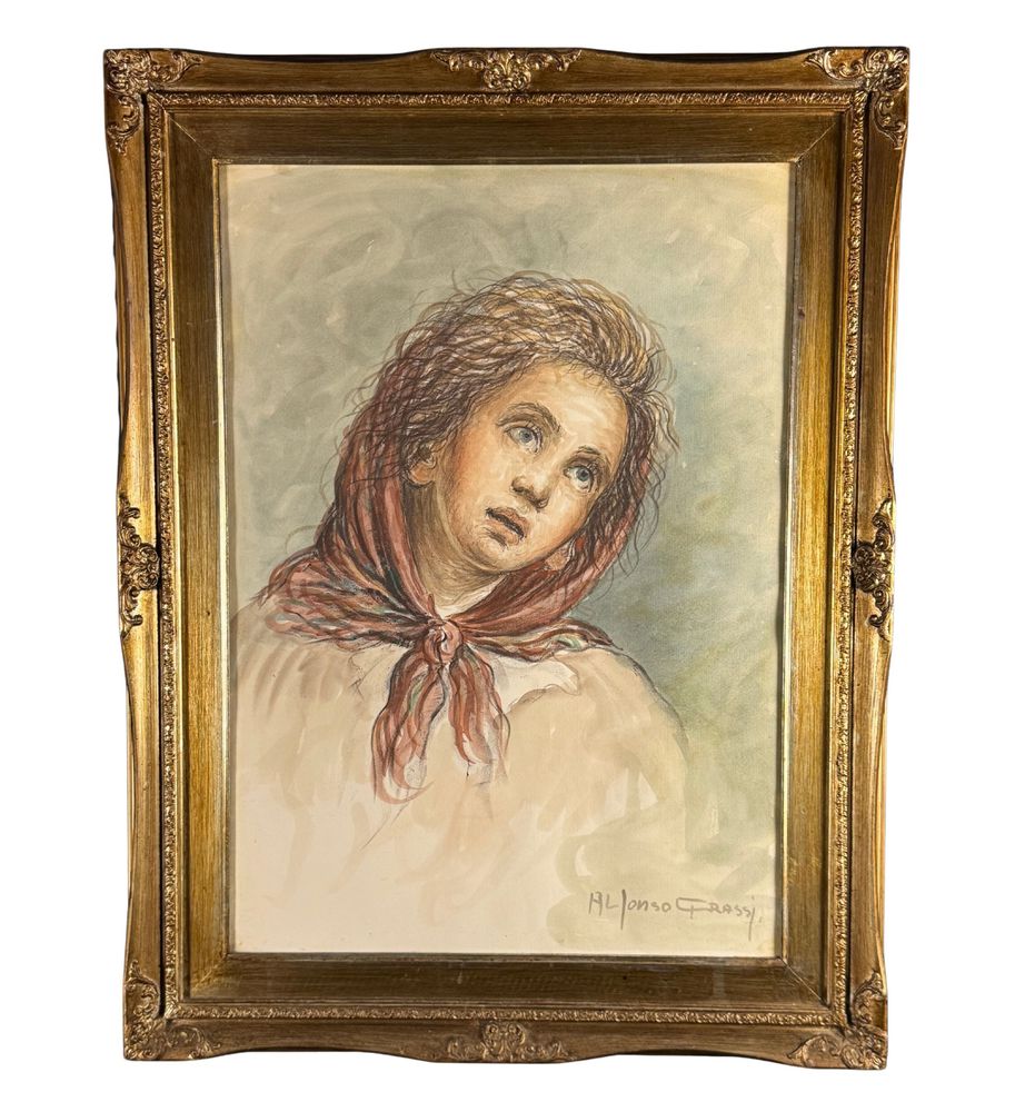 Litografia su carta, periodo XX secolo, scuola Italiana, raffigurante Donna con copricapo. Dimensioni compreso cornice: 67x86 cm. Dimensioni interno cornice: 50x70 cm. Firmato in basso a destra e autentica sul retro Alfonso Grassi. Opera in buone condizioni.
