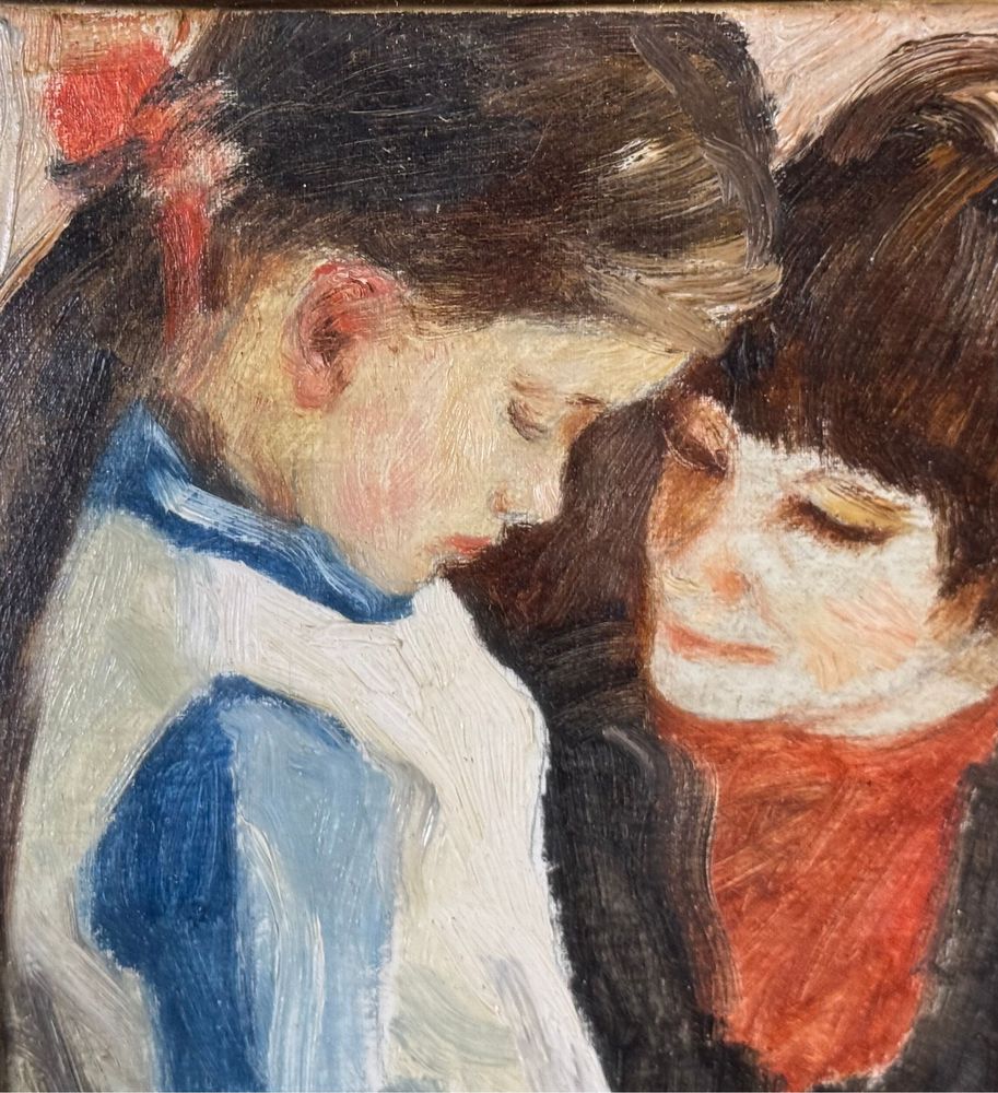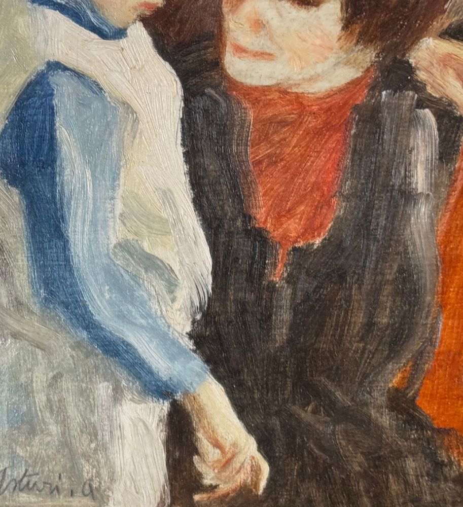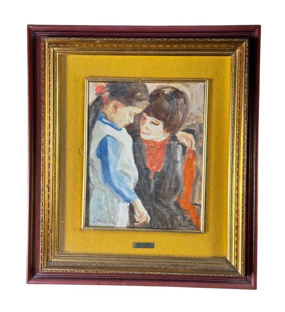Dipinto olio su tela, periodo XX secolo, scuola Italiana, raffigurante Scena materna. Dimensioni compreso cornice: 47x53 cm. Dimensioni interno cornice: 24x30 cm. Firmato in basso a sinistra Antonio Asturi. Opera in buone condizioni.