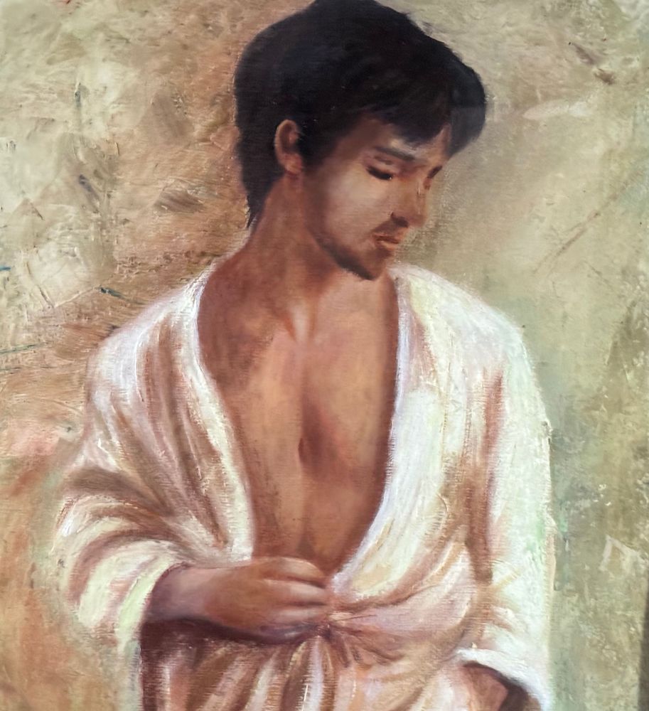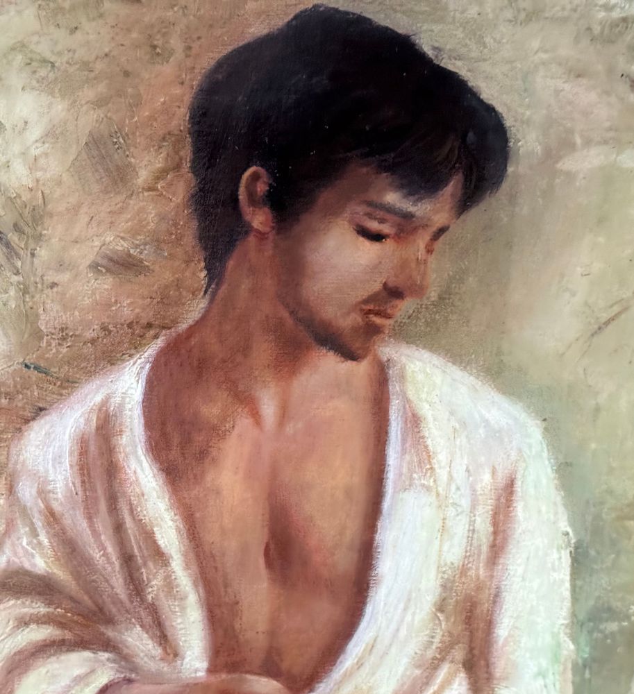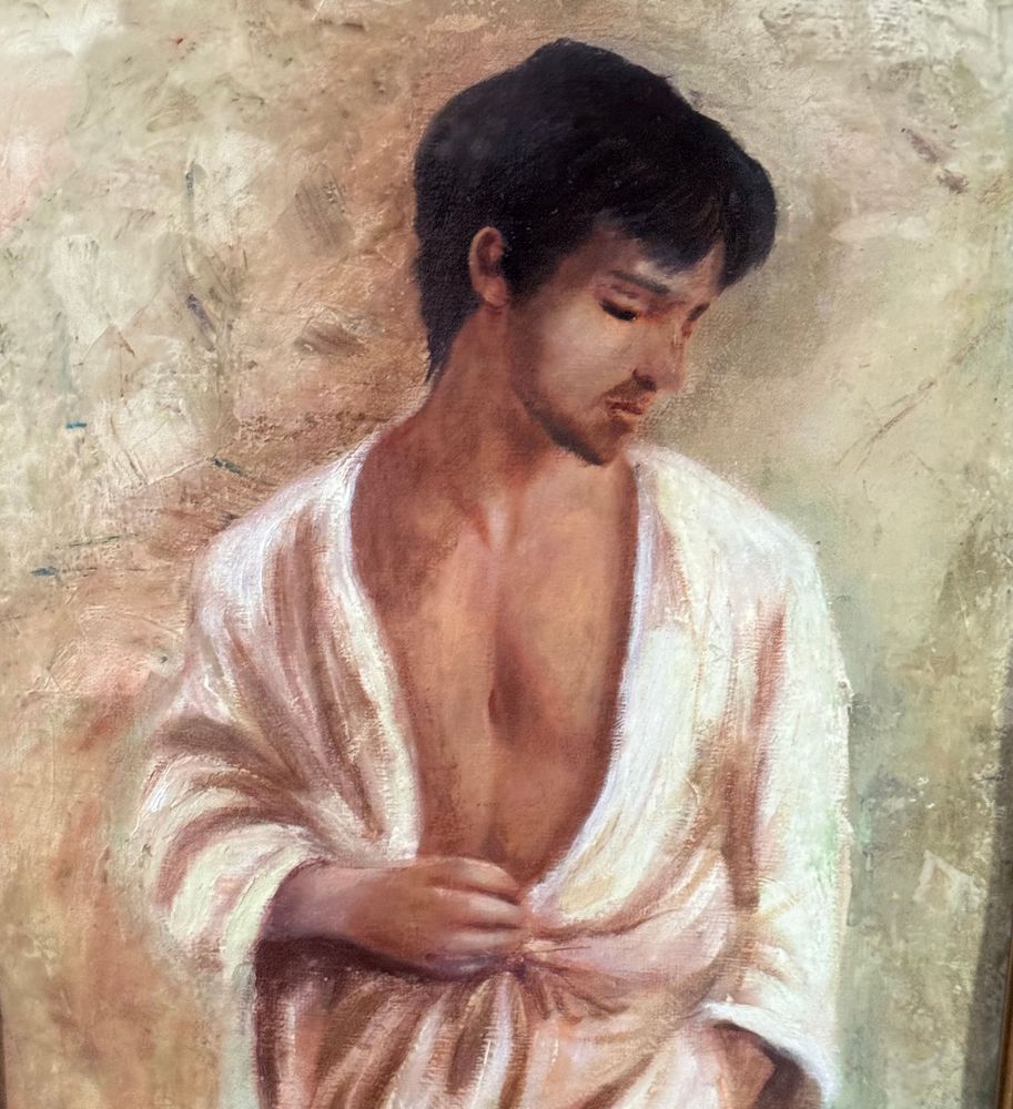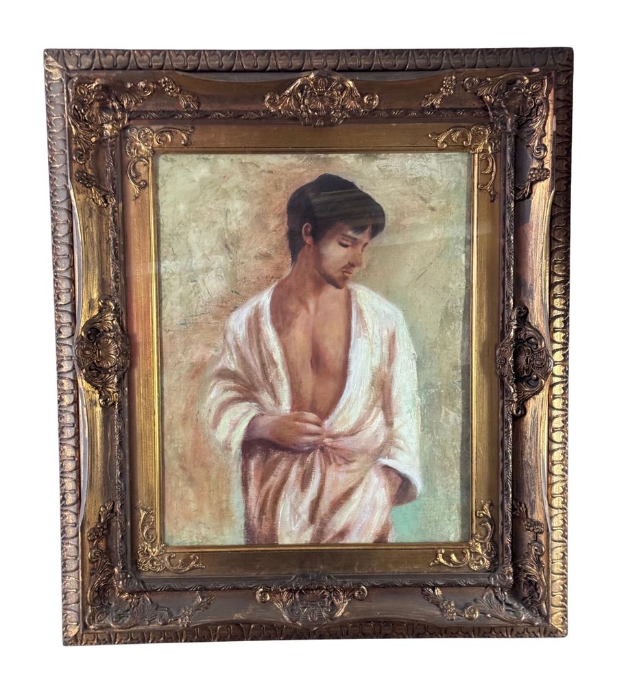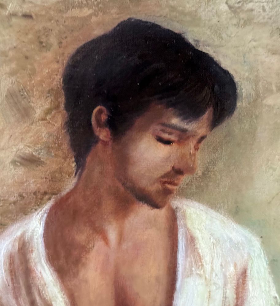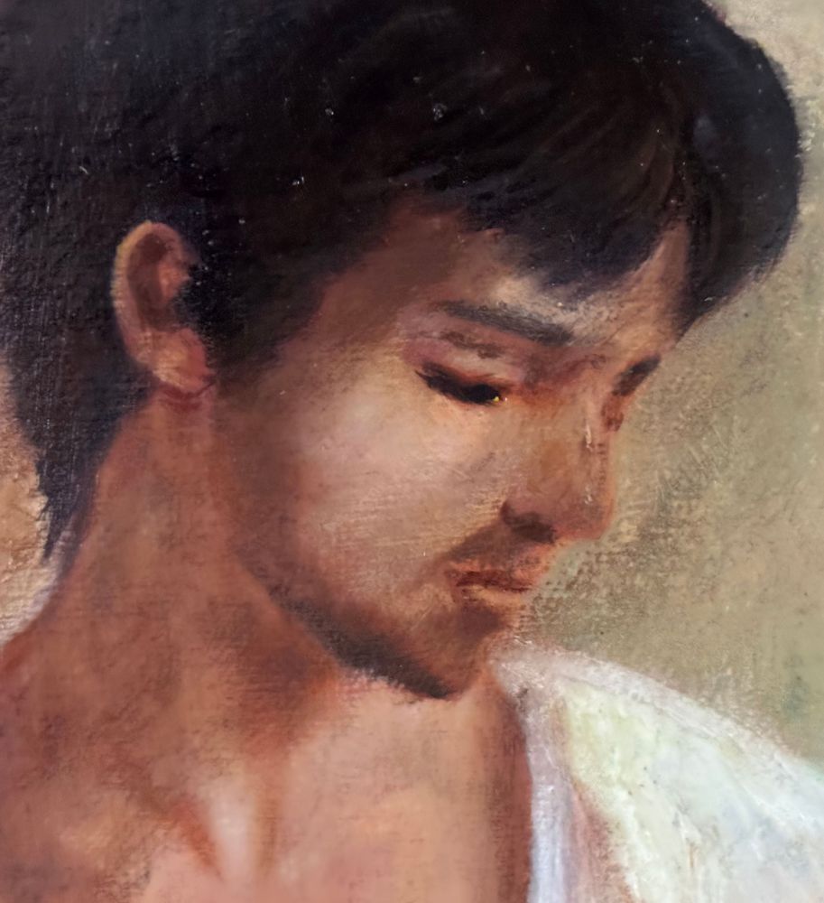 Dipinto olio su tela, periodo XX secolo, scuola Italiana raffigurante Figura maschile. Dimensioni compreso cornice: 63x73 cm. Dimensioni interno cornice: 40x50 cm. Artista anonimo. Opera in buone condizioni.