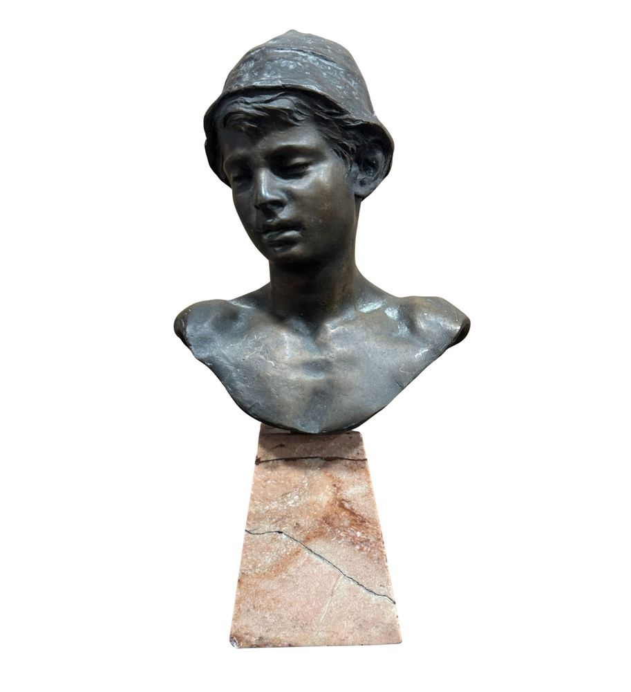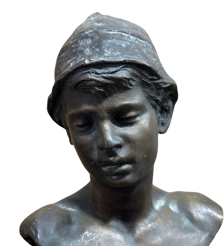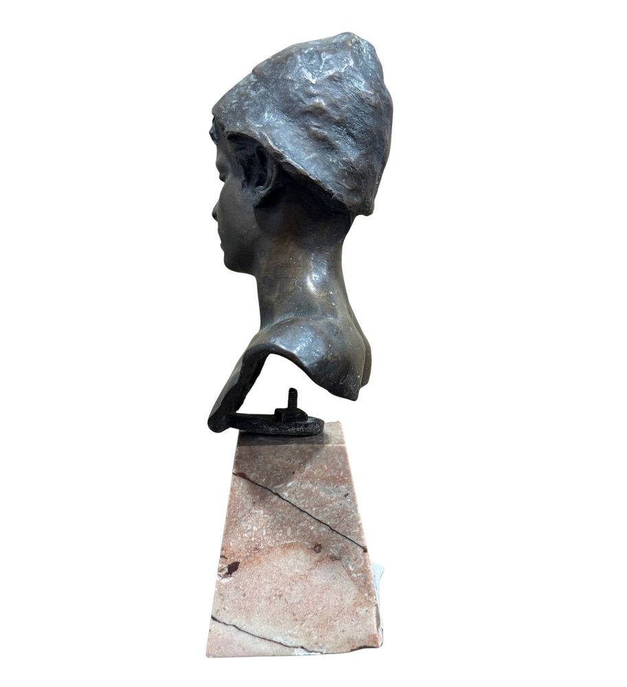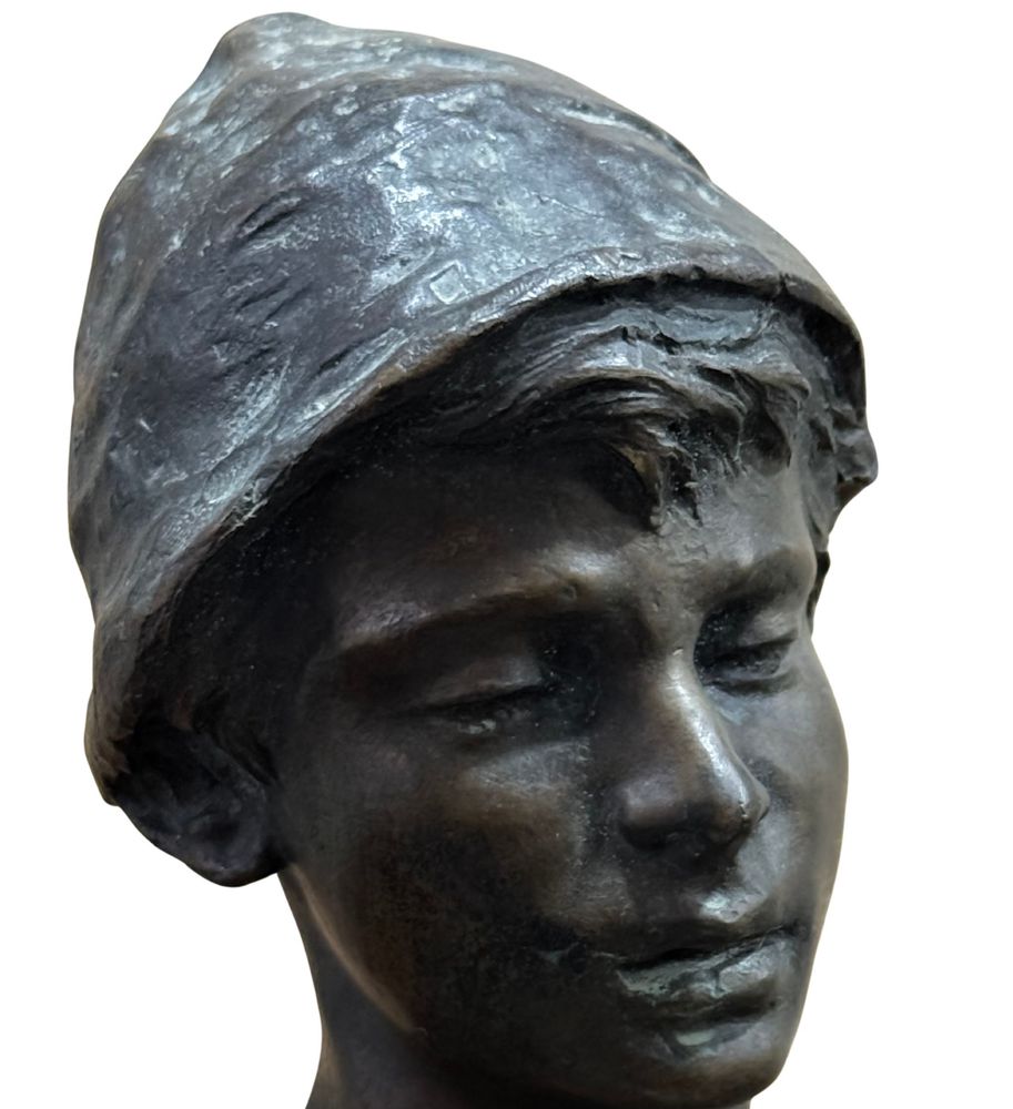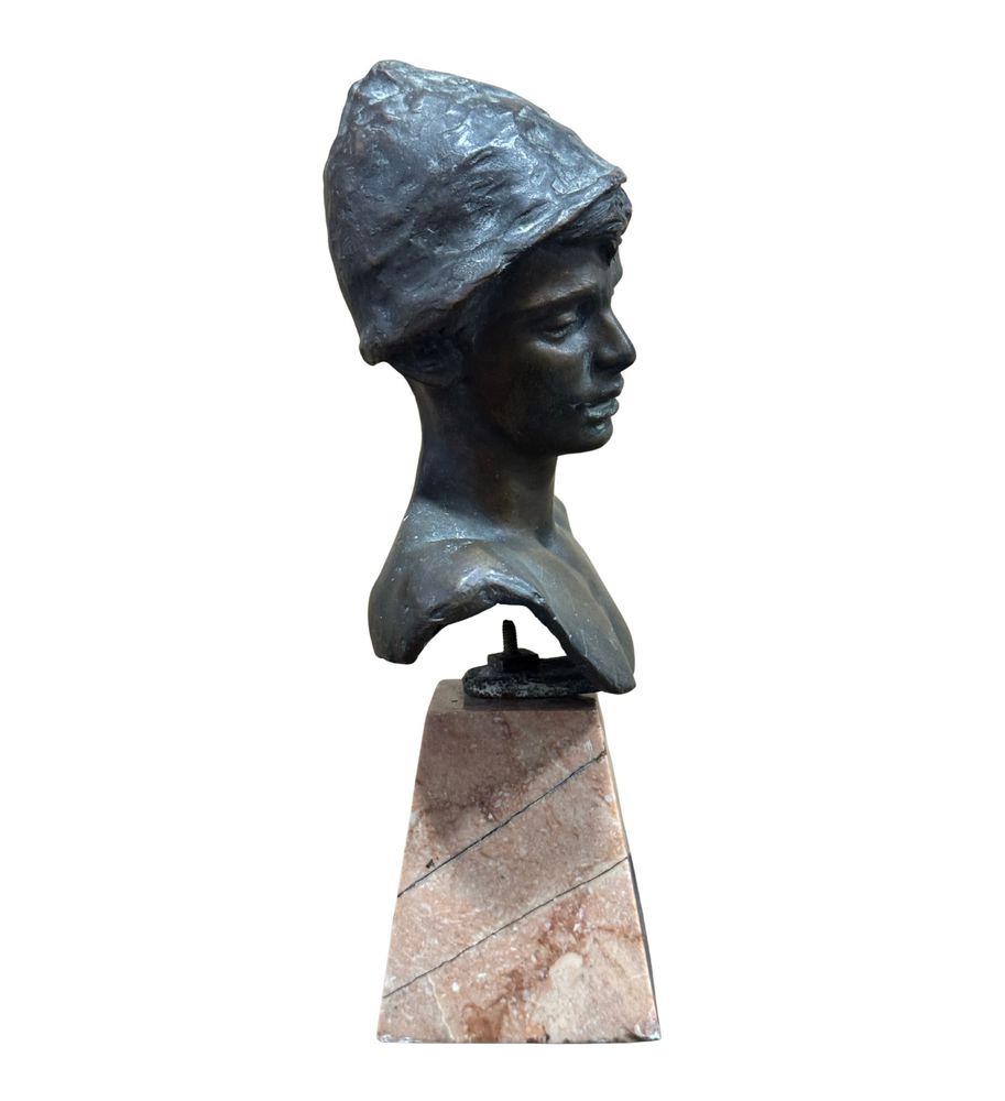 Scultura in bronzo a cera persa, raffigurante Personaggio Napoletano, periodo XX secolo. Dimensioni: h24 cm su base in marmo x 13x6 cm. Scultura in buone condizioni. Firmato sul retro Achille D'Orsi.