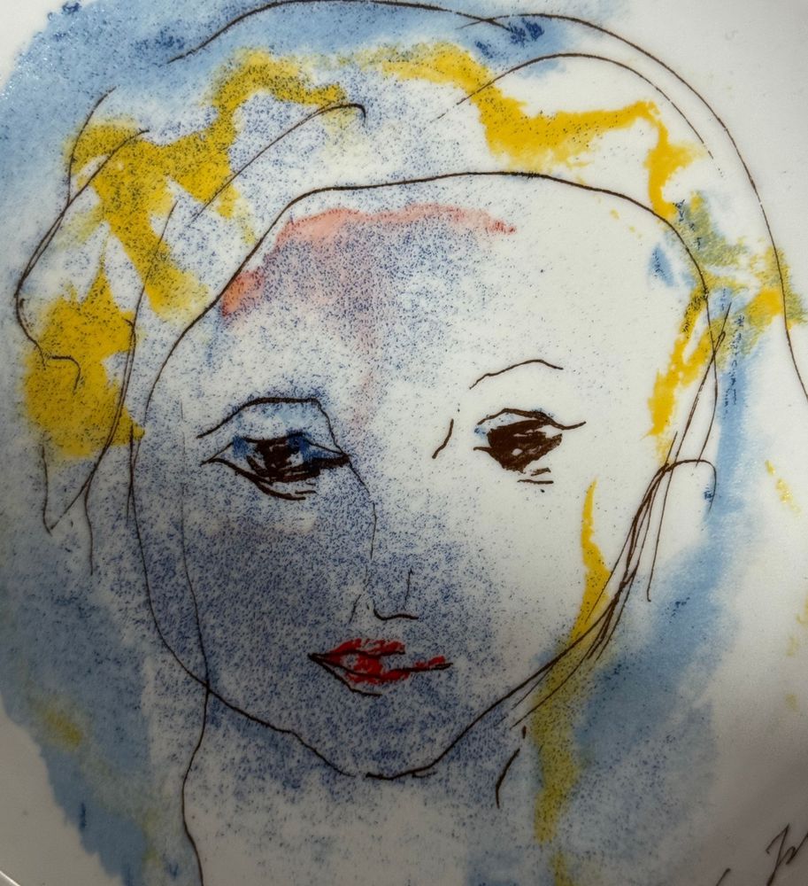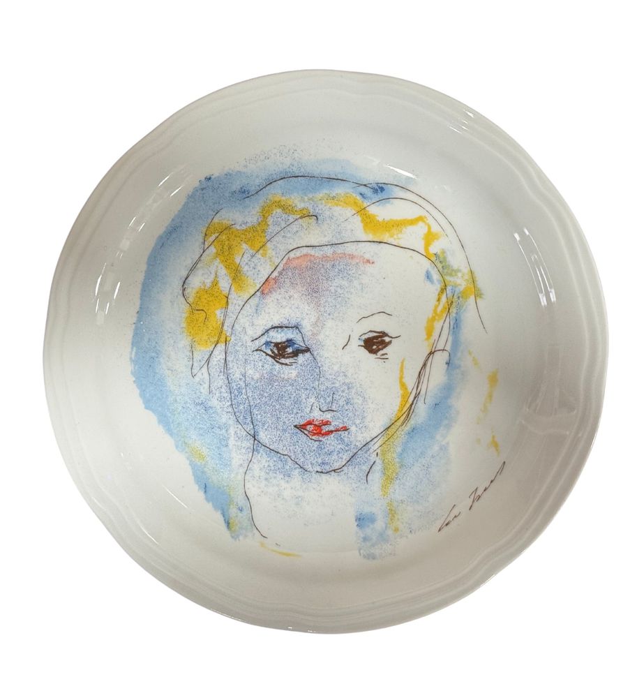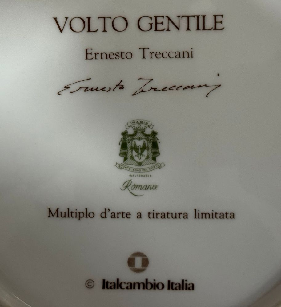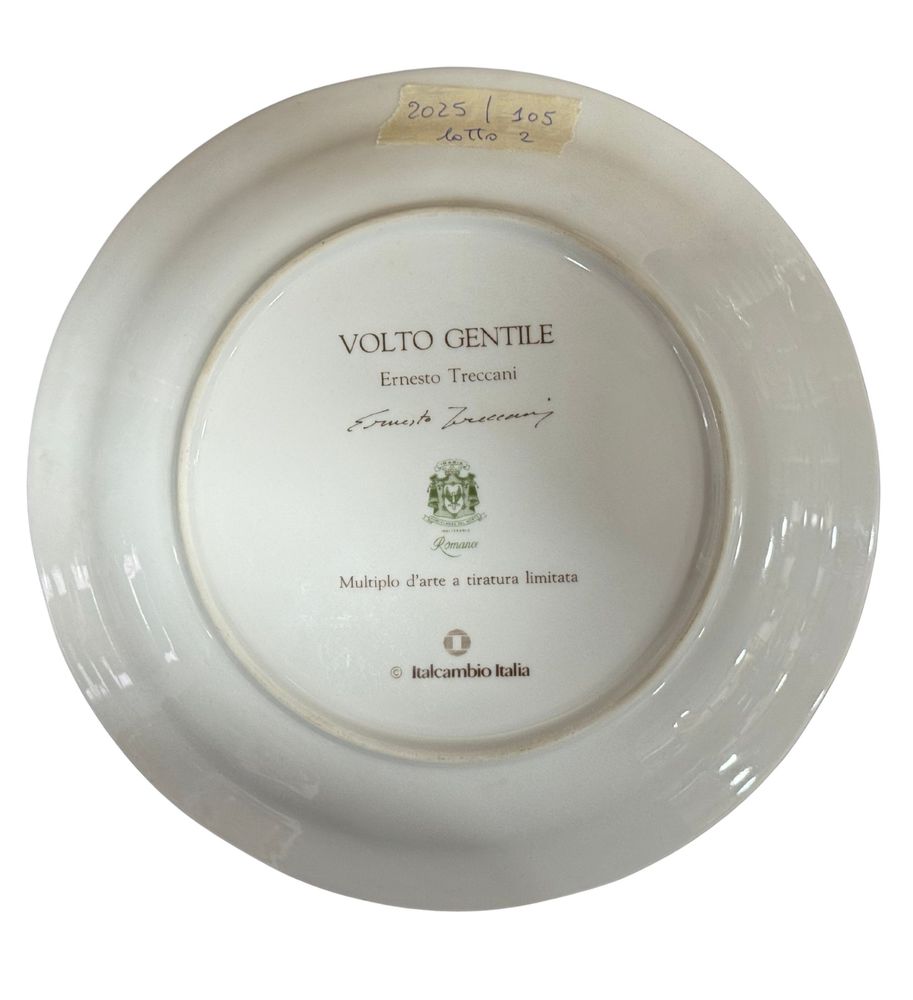 Piatto in porcellana, periodo XX secolo raffigurante Volto gentile di Ernesto Treccani. Tiratura limitata. Multiplo D'arte. Dimensioni: Diametro 25 cm. In buone condizioni.