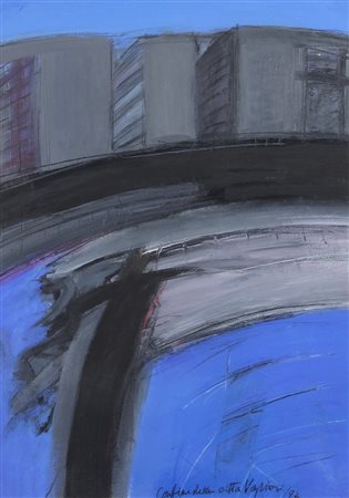 Vaglieri Tino Confine della città, 1997 olio su carta, cm. 70x50 firmato,...