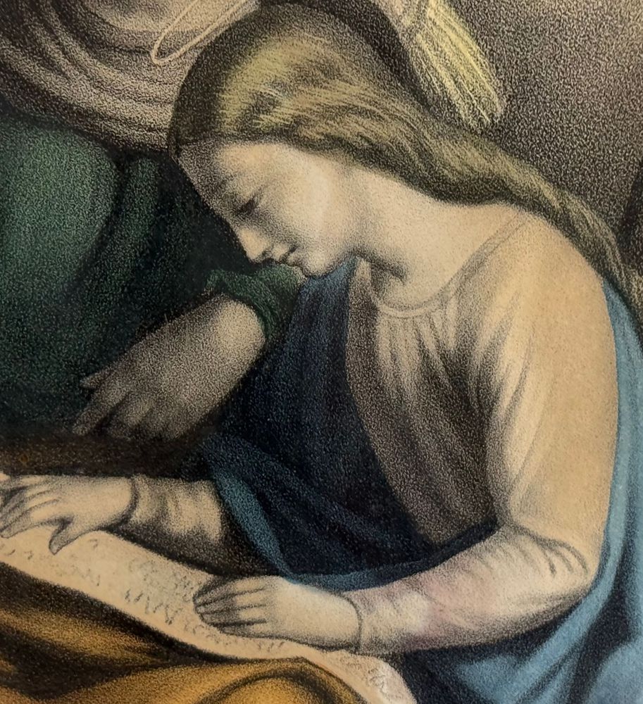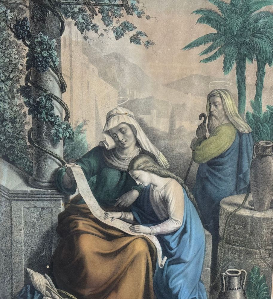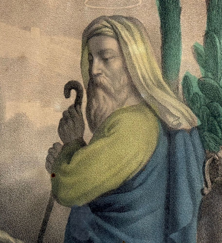 Stampa acquerellata su carta, periodo XIX secolo, scuola Italiana, raffigurante Scena Biblica. Dimensioni compreso cornice: 56x68 cm. Dimensioni interno cornice: 33x45 cm. Artista anonimo. Opera in buone condizioni.