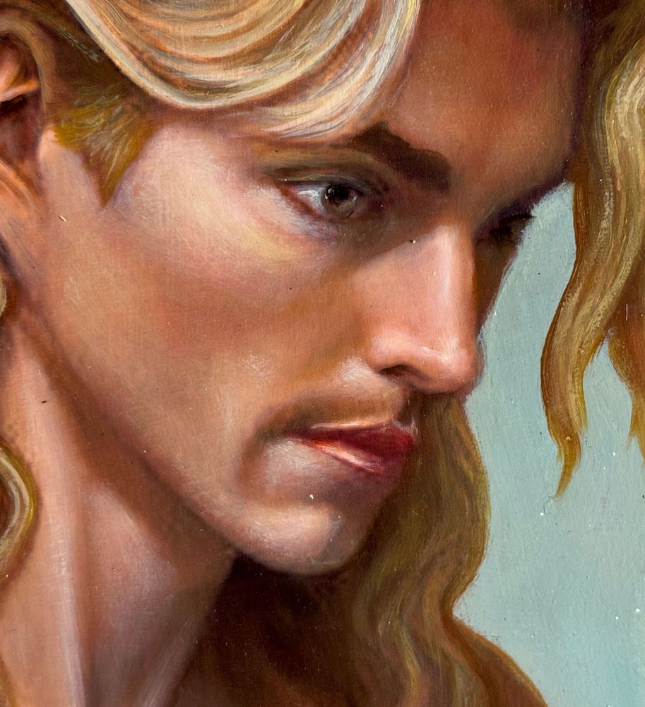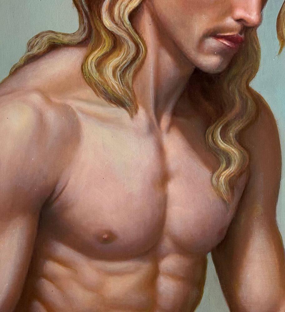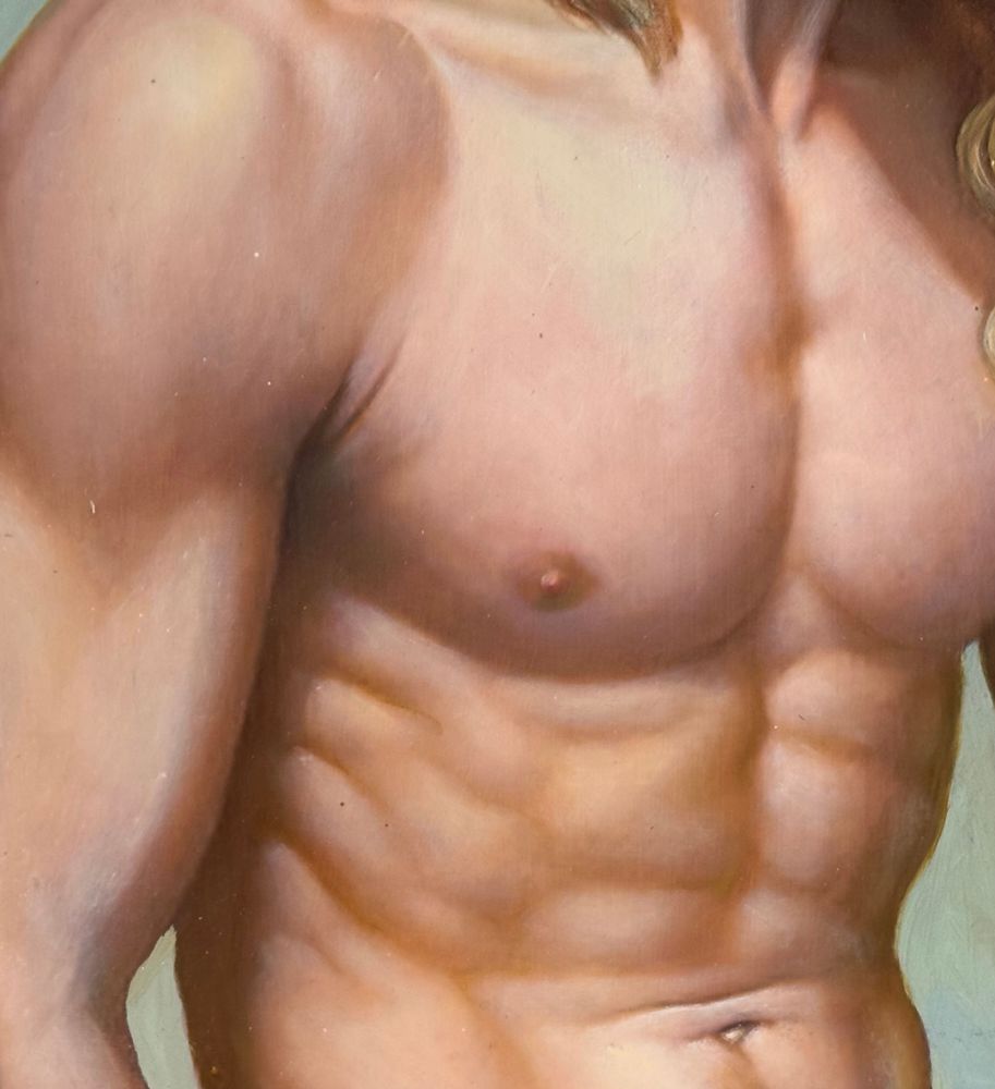 Dipinto olio su pannello, periodo XX secolo, scuola Italiana, raffigurante Ritratto maschile a torso nudo. Dimensioni compreso cornice: 64x53 cm. Dimensioni interno cornice: 40x50 cm. Da artista anonimo. Opera in buone condizioni.
