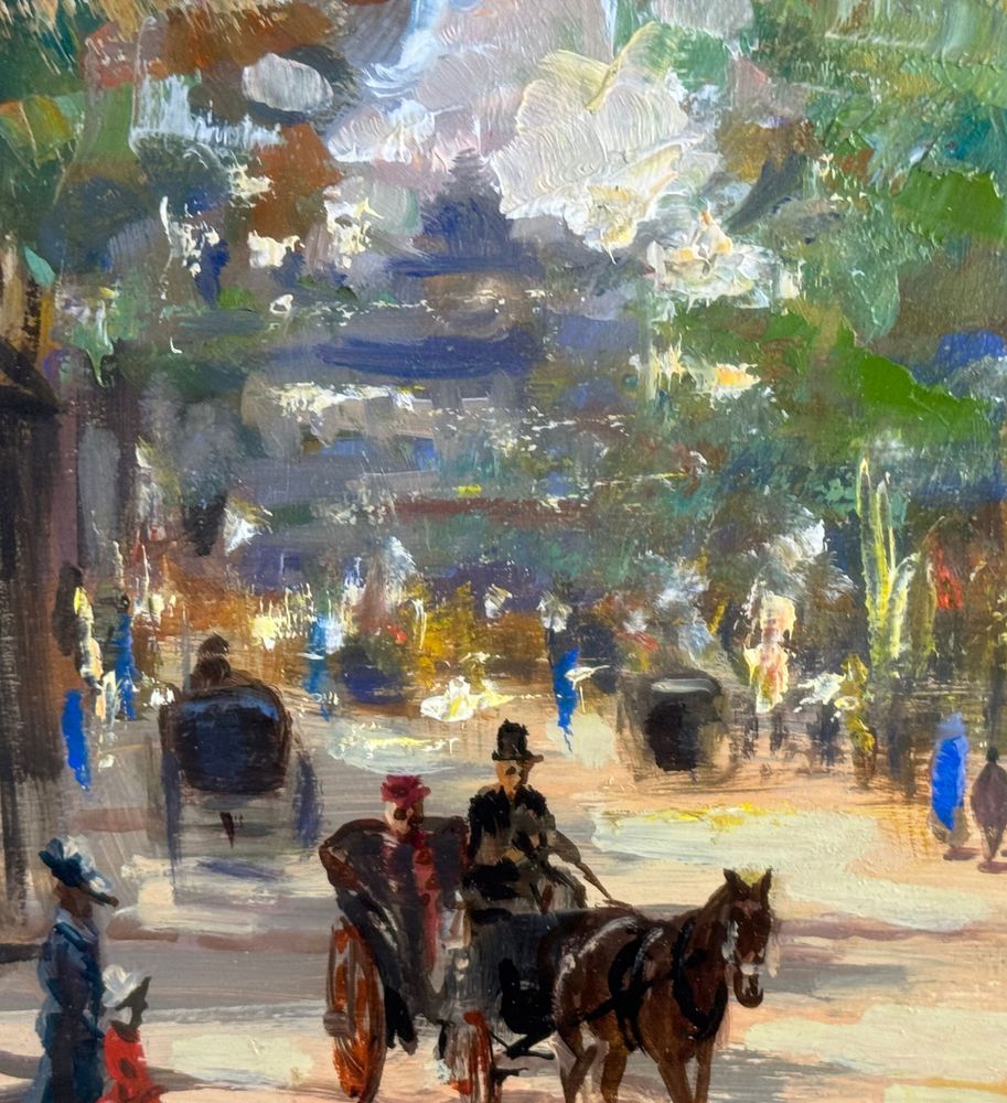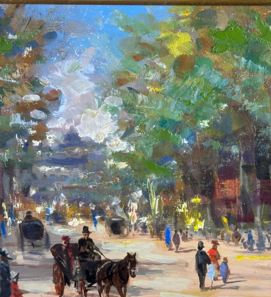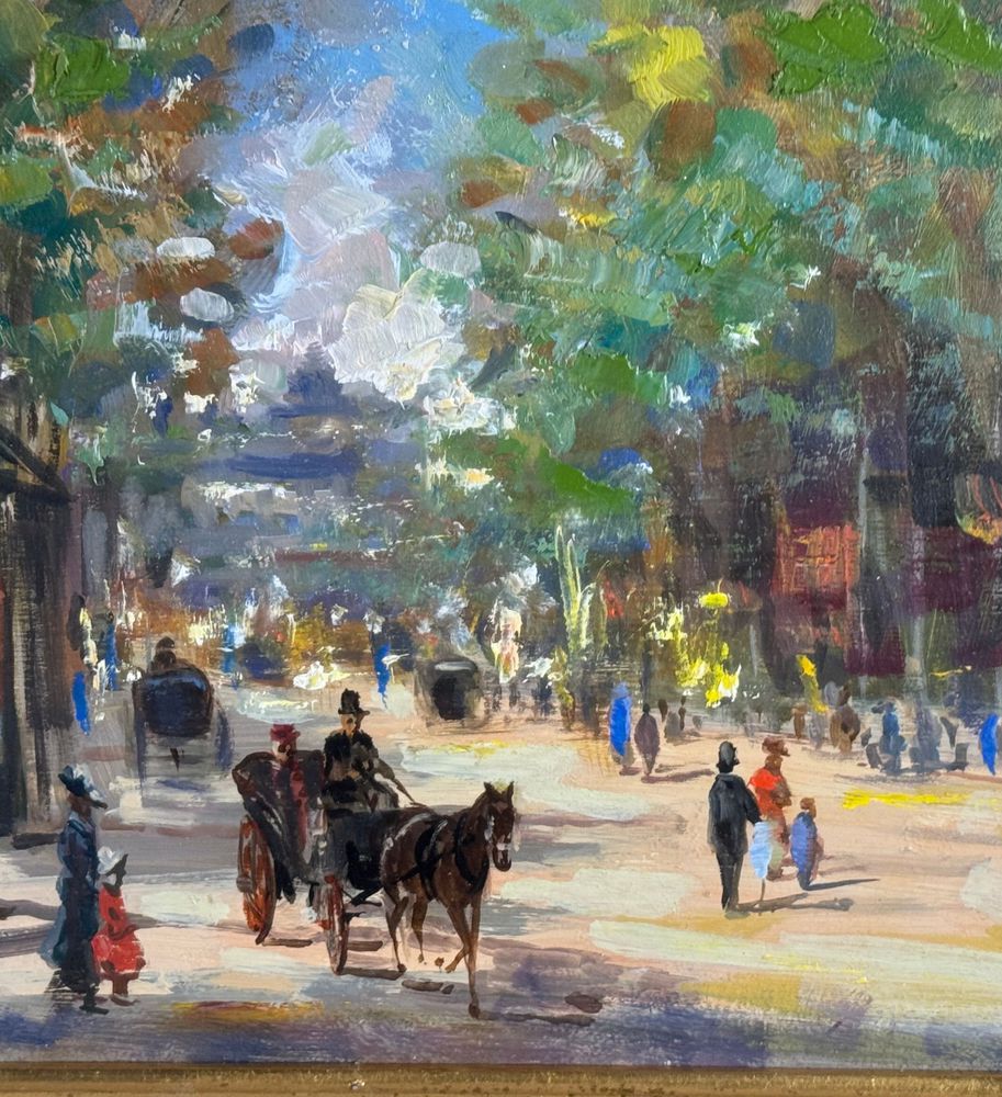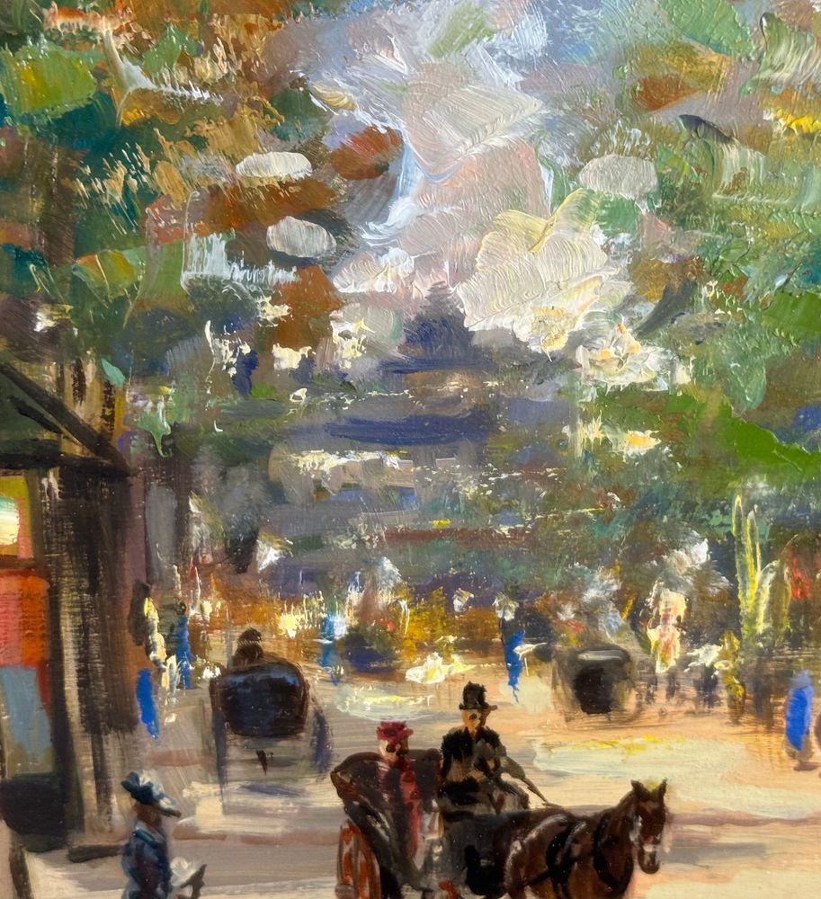 Dipinto olio su tavola, periodo XX secolo, scuola Italiana, raffigurante Strada con personaggi. Dimensioni compreso cornice: 60x50 cm. Dimensioni interno cornice: 25x35 cm. Firmato in basso a sinistra artista non identificato. Opera in ottime condizioni e di eccellente qualità artistica.