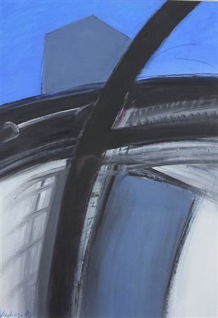 Vaglieri Tino Confine della città, 1998 olio su carta, cm. 70x50 firmato e...