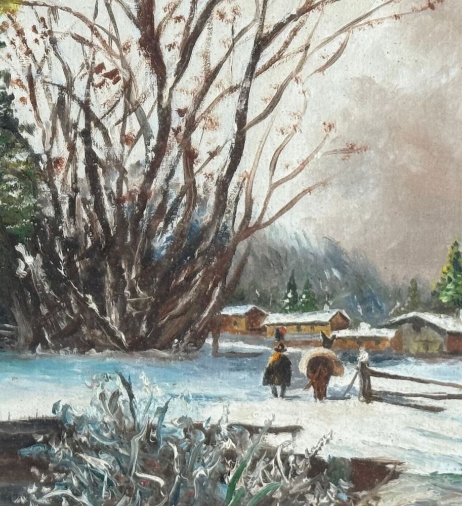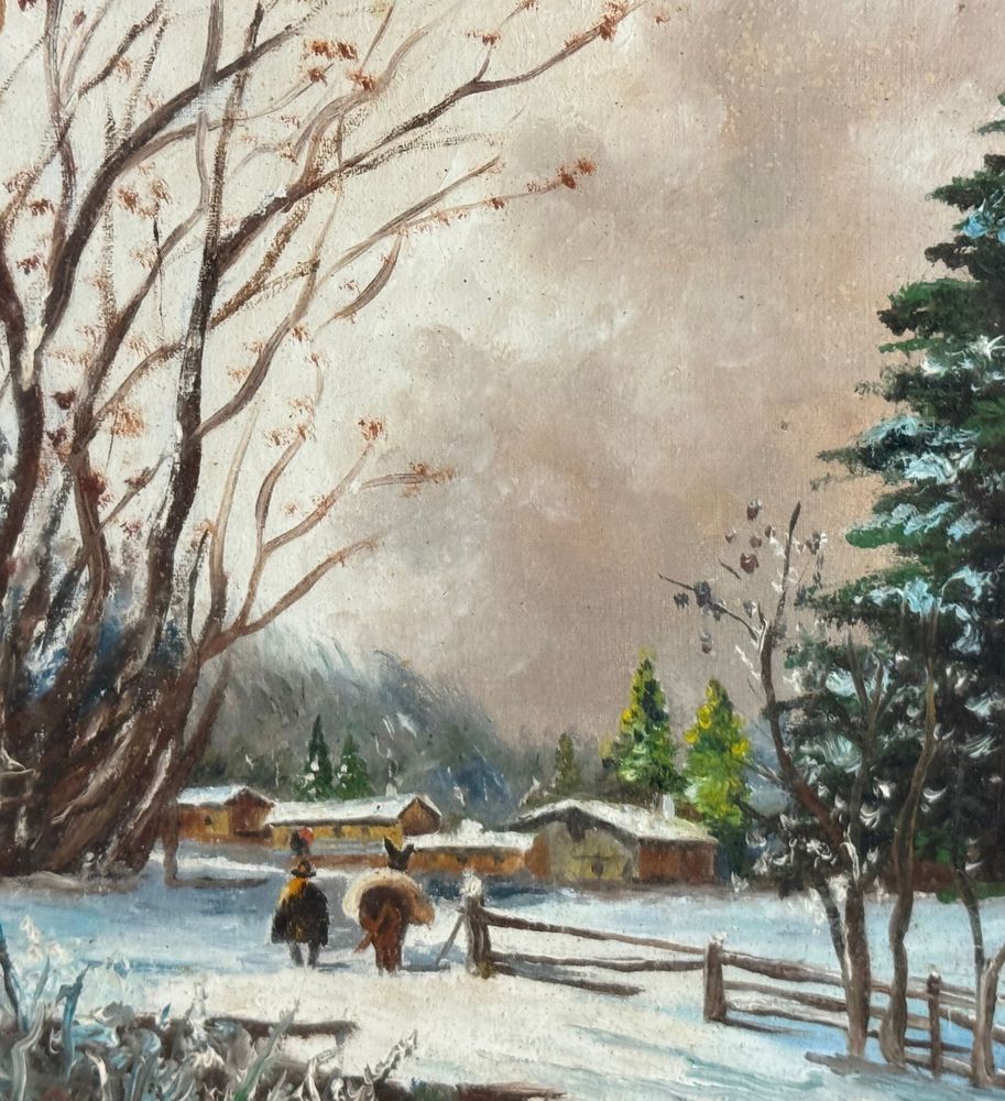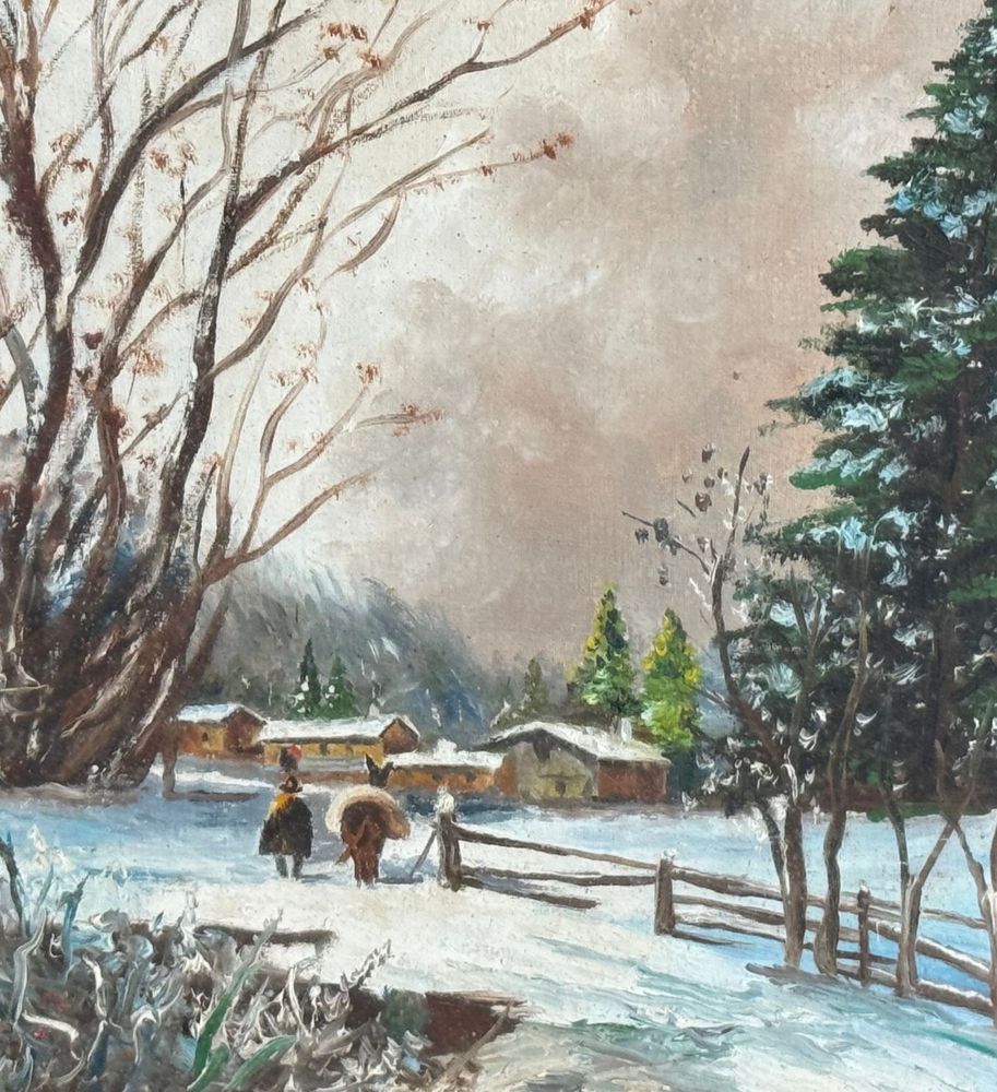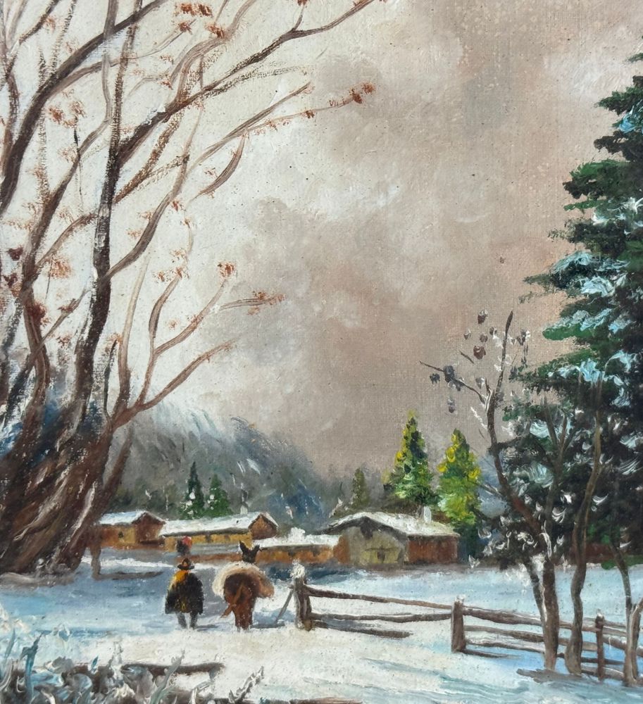 Dipinto olio su pannello, periodo XX secolo, scuola Italiana, raffigurante Paesaggio di montagna innevato. Dimensioni compreso cornice: 57x47 cm. Dimensioni interno cornice: 33x22 cm. Firmato in basso a sinistra da artista non identificato. Opera in buone condizioni.