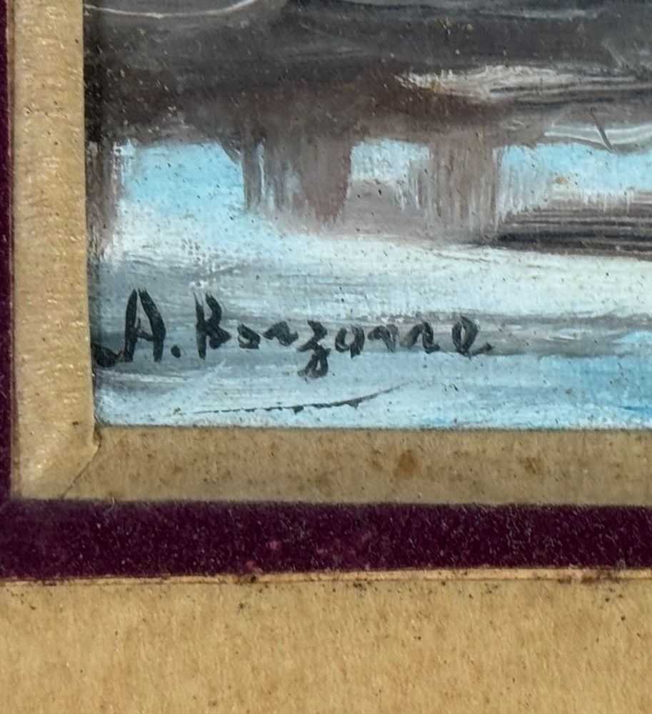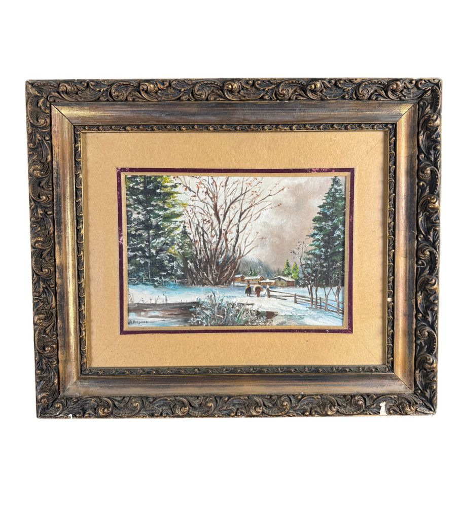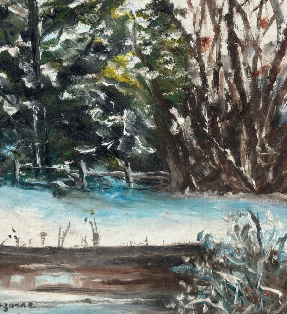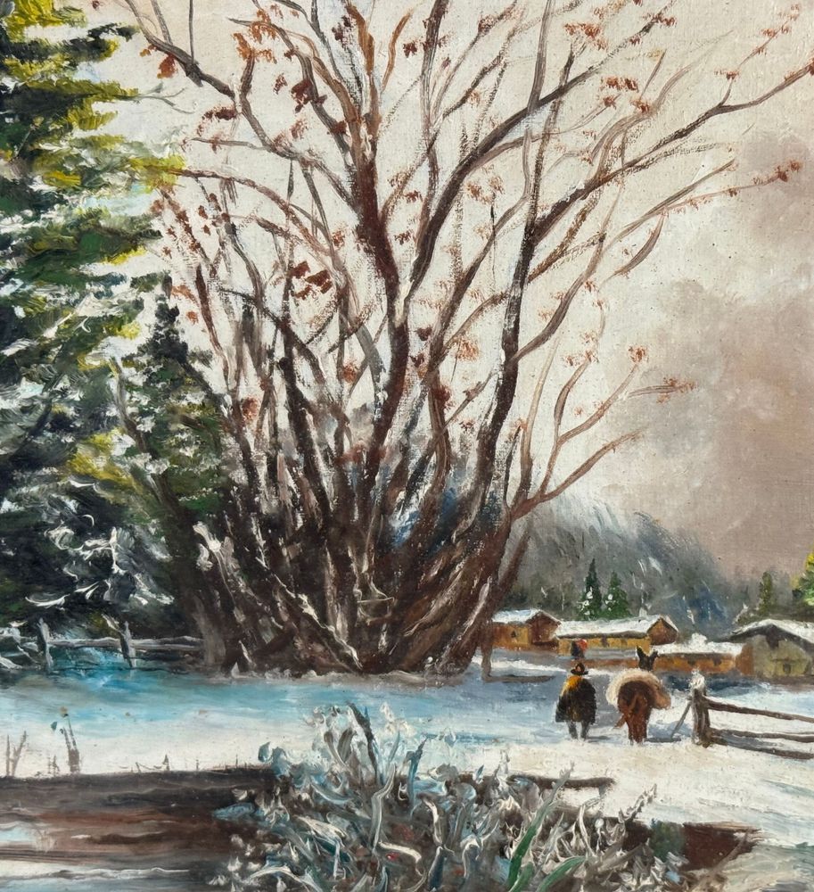 Dipinto olio su pannello, periodo XX secolo, scuola Italiana, raffigurante Paesaggio di montagna innevato. Dimensioni compreso cornice: 57x47 cm. Dimensioni interno cornice: 33x22 cm. Firmato in basso a sinistra da artista non identificato. Opera in buone condizioni.