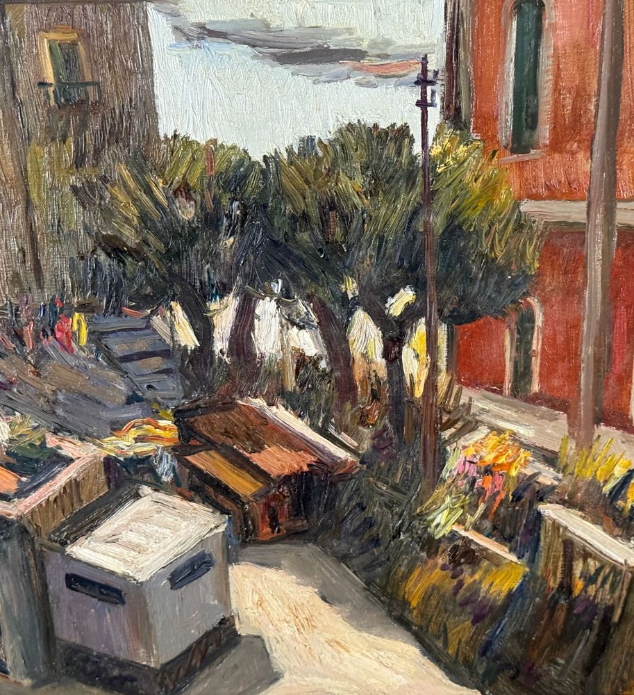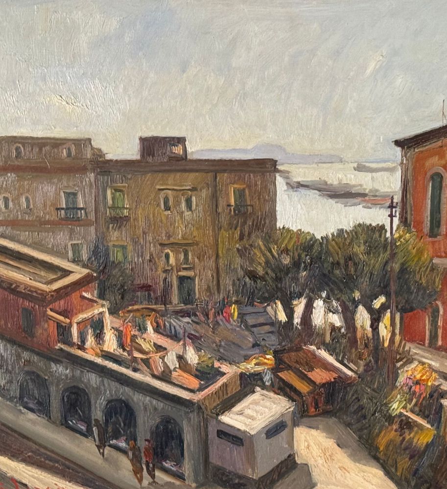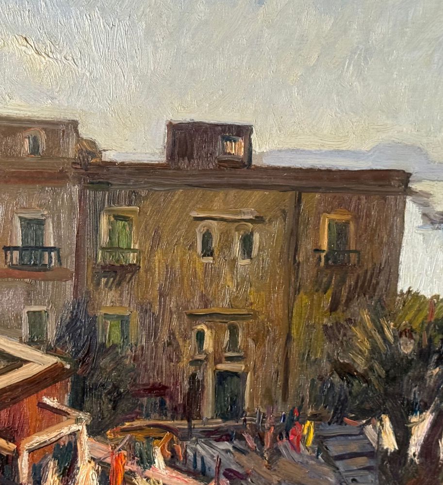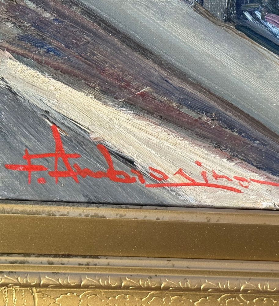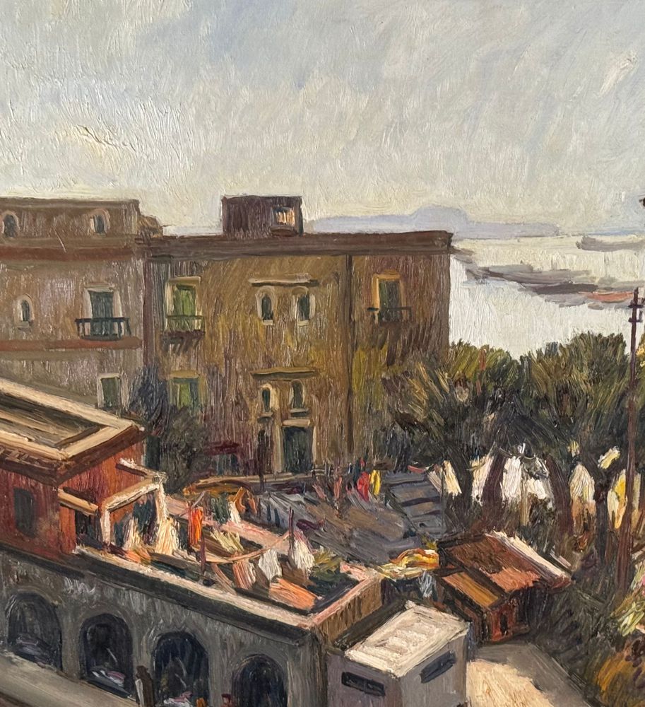 Dipinto olio su tela, periodo XX secolo, scuola Italiana raffigurante Strada con paesaggio marino. Dimensioni compreso cornice: 63x73 cm. Dimensioni interno cornice: 60x50 cm. Firmato in basso a sinistra Ferdinando Ambrosino (1938). Opera in buone condizioni.