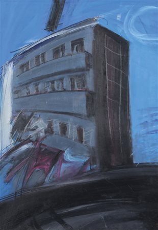 Vaglieri Tino Casa bombardata, 1997 olio su carta, cm. 70x50 firmato,...