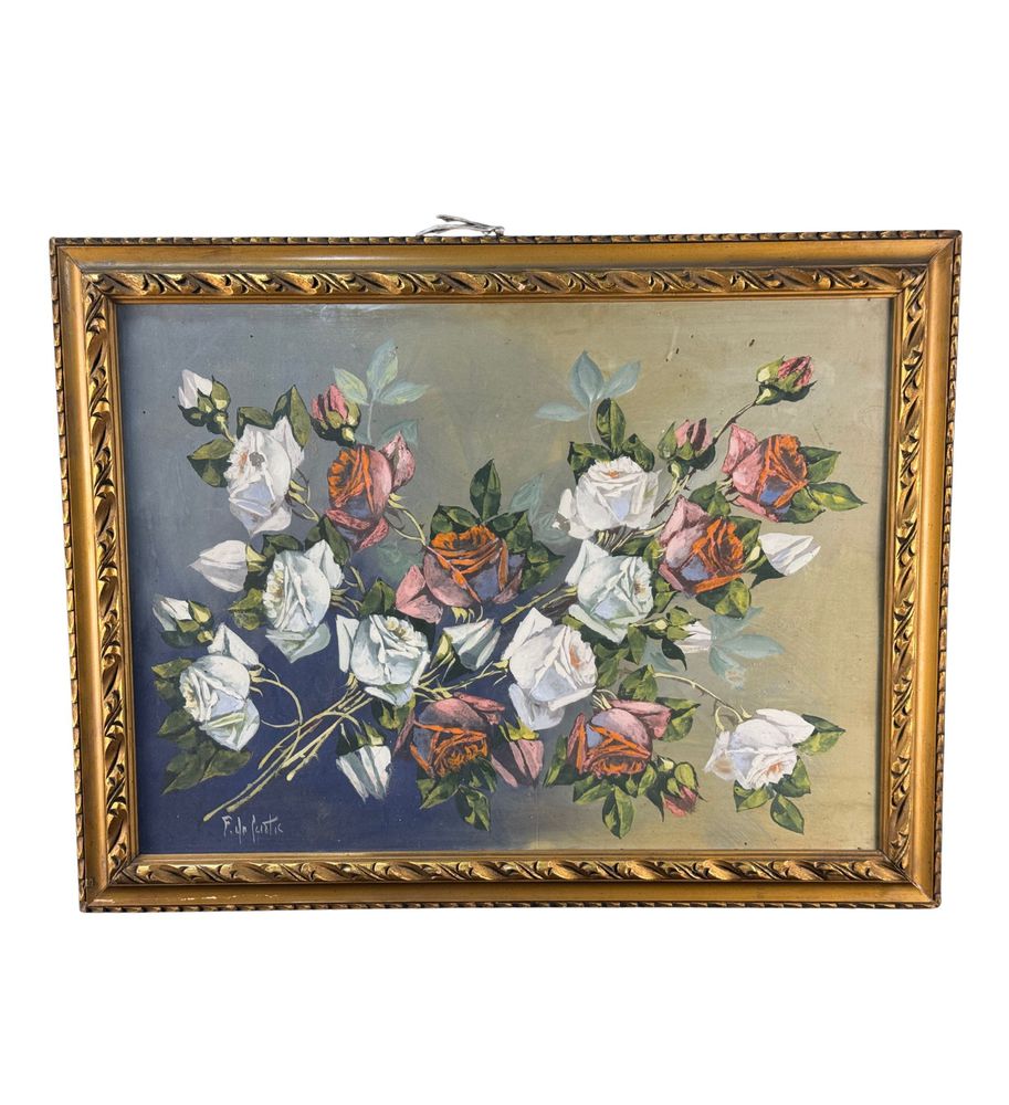 Dipinto olio su tavola, periodo XX secolo, scuola Italiana raffigurante Fiori. Dimensioni compreso cornice: 78x61 cm. Dimensioni interno cornice: 68x49 cm. Firmato in basso a sinistra Federico De Curtis. Opera in buone condizioni e di ottima qualità artistica.