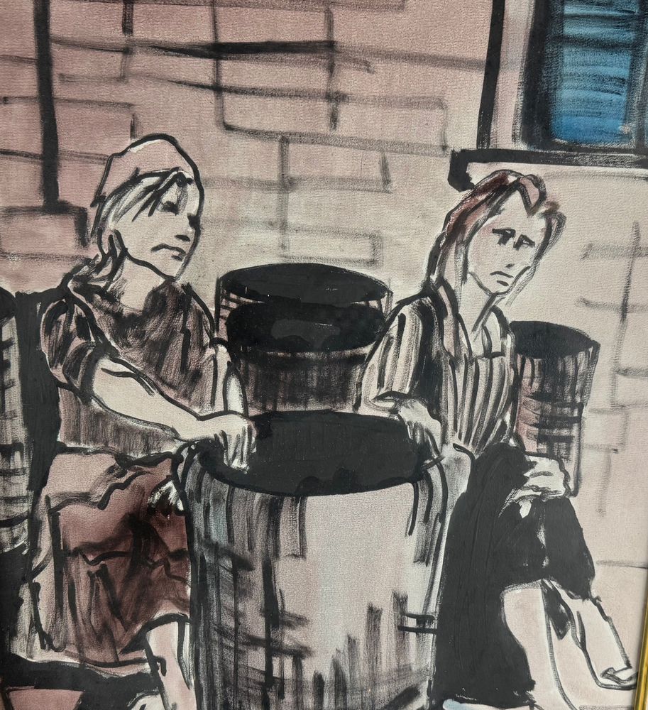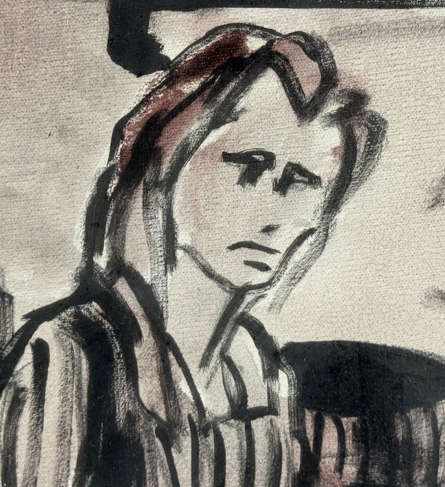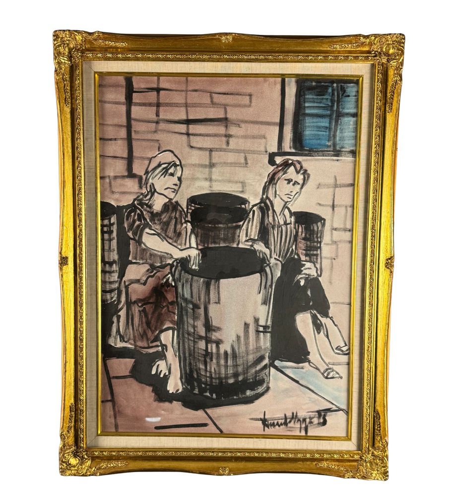 Dipinto olio su tela, periodo XX secolo, scuola Italiana raffigurante Due personaggi. Dimensioni compreso cornice: 83x64 cm. Dimensioni interno cornice: 50x70 cm. Firmato in basso a destra da artista non identificato. Opera in buone condizioni.