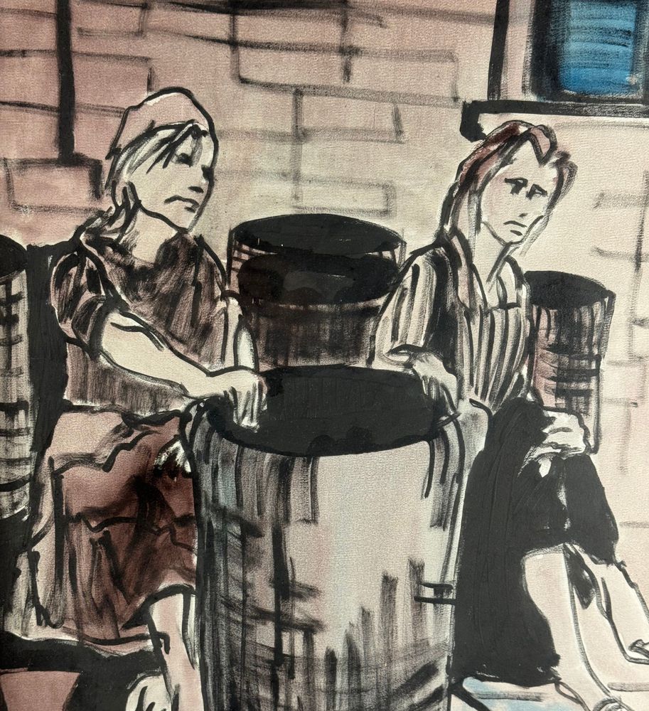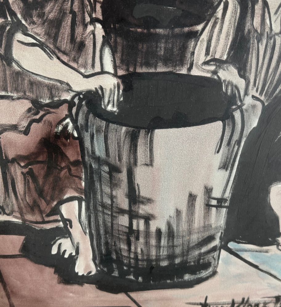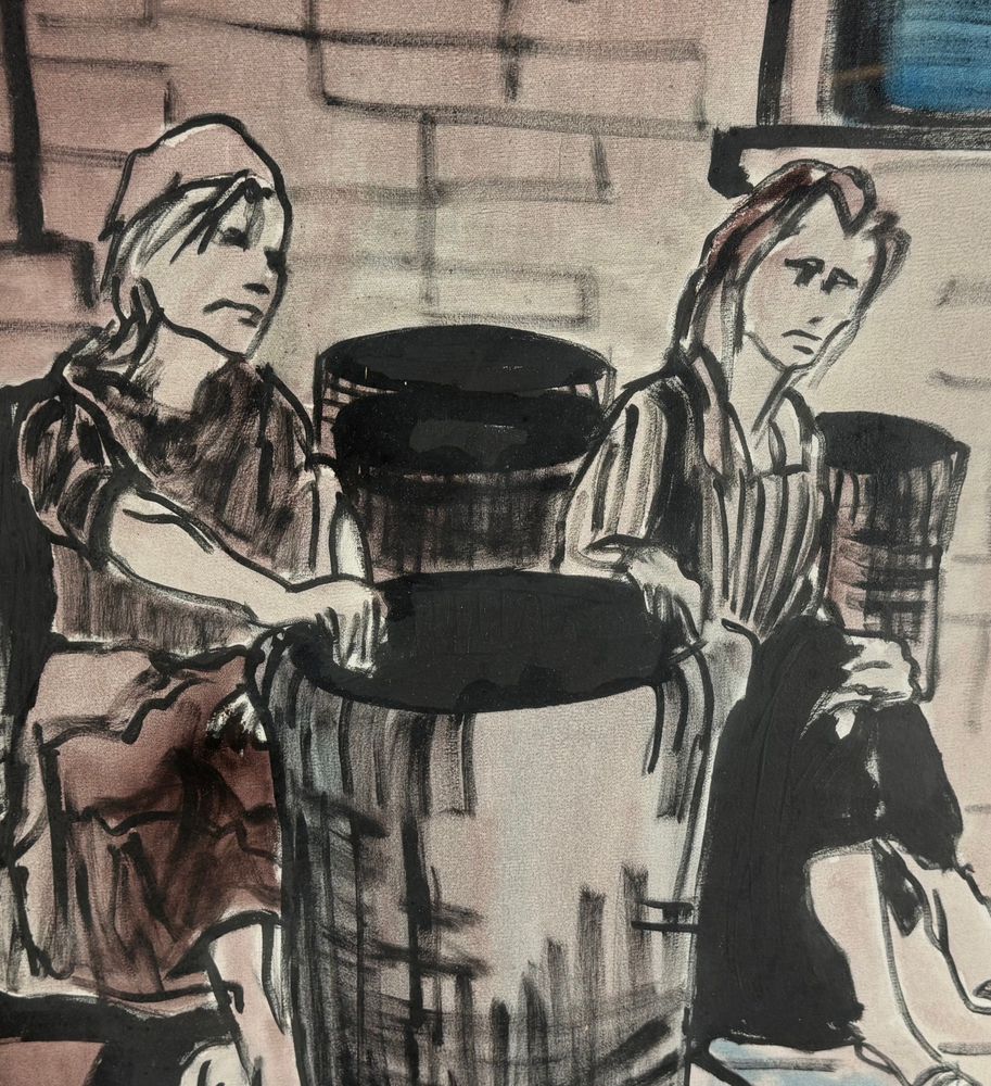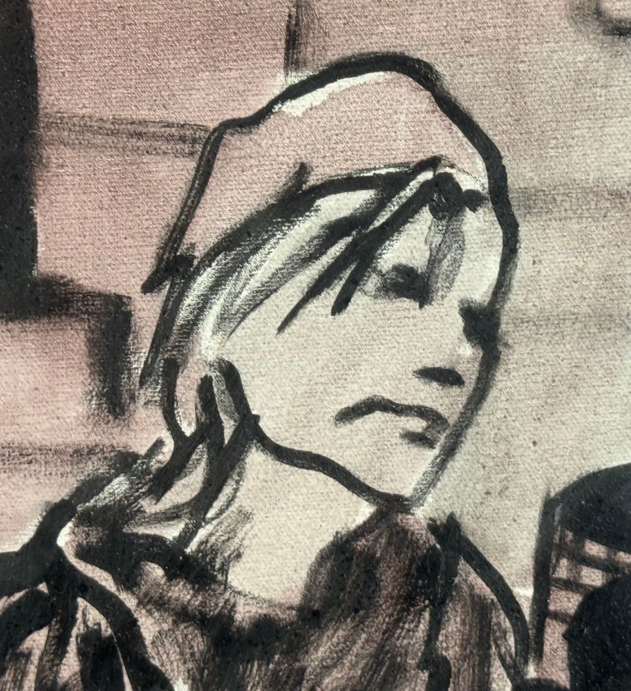 Dipinto olio su tela, periodo XX secolo, scuola Italiana raffigurante Due personaggi. Dimensioni compreso cornice: 83x64 cm. Dimensioni interno cornice: 50x70 cm. Firmato in basso a destra da artista non identificato. Opera in buone condizioni.