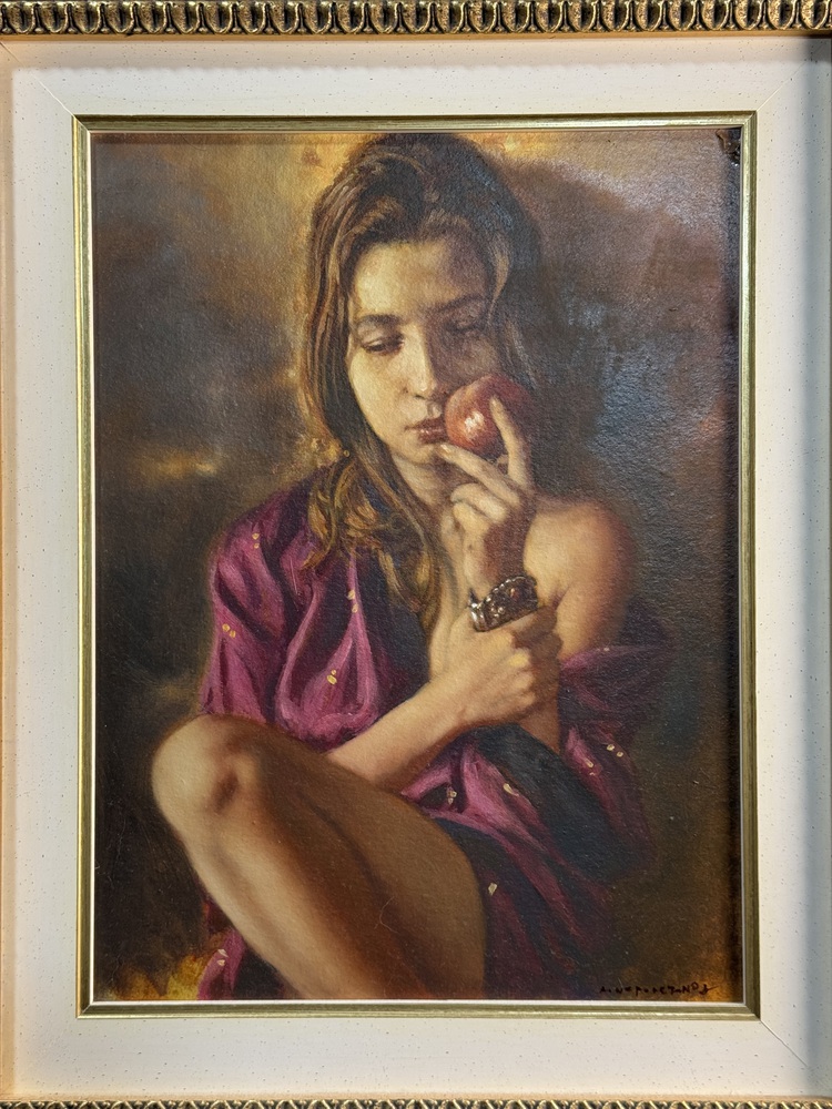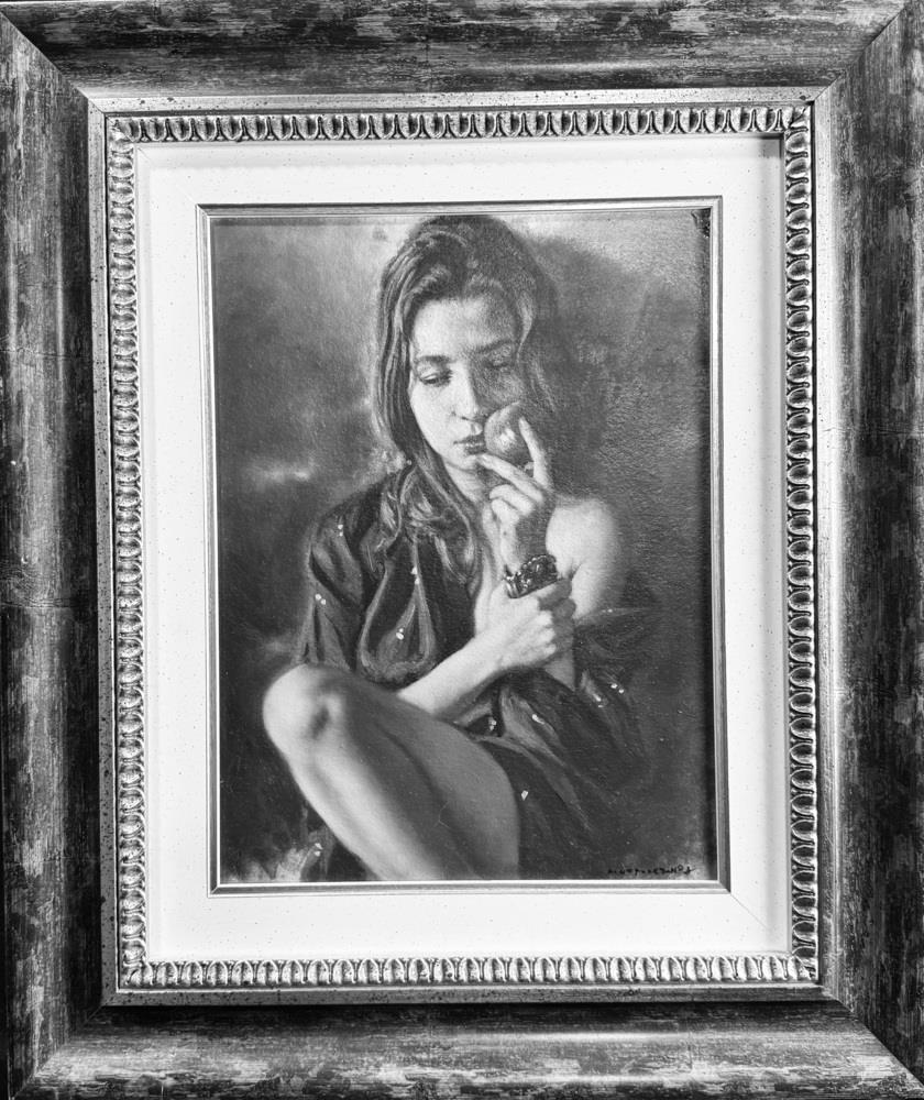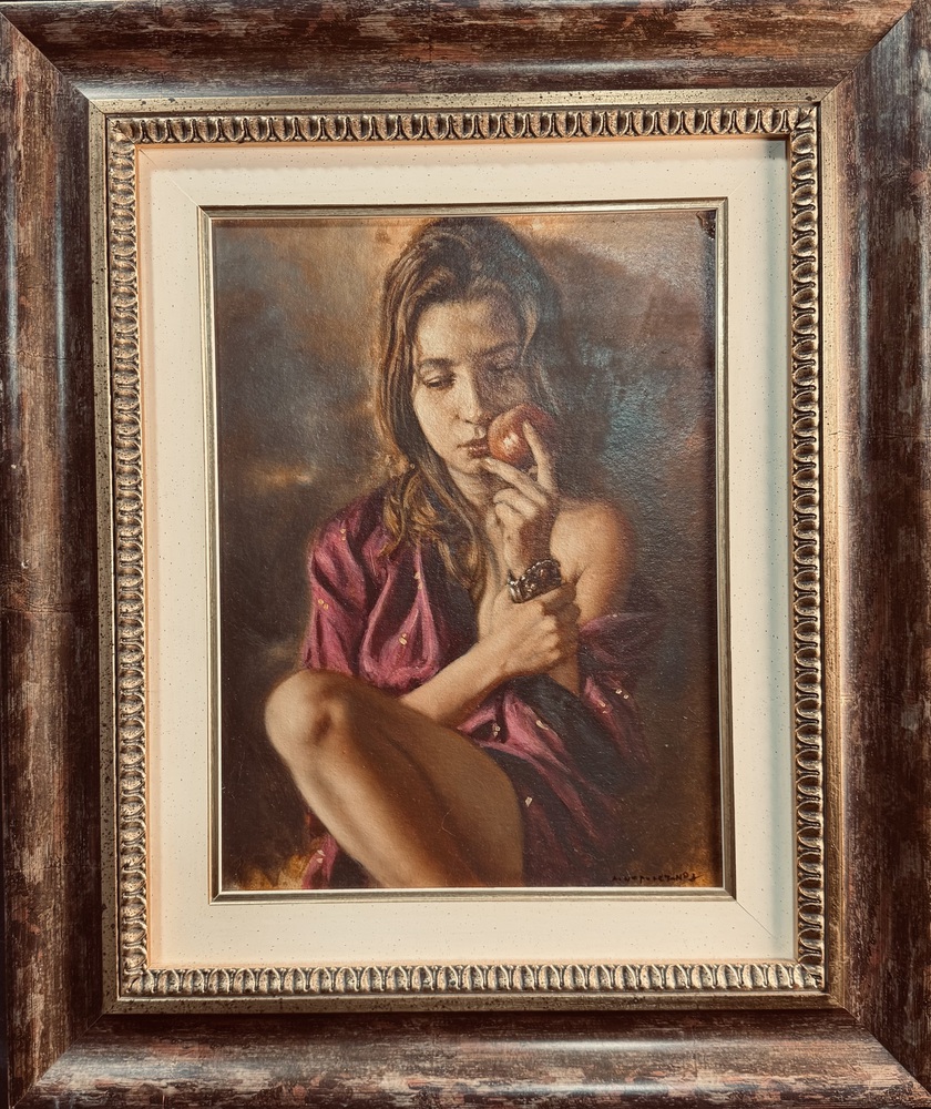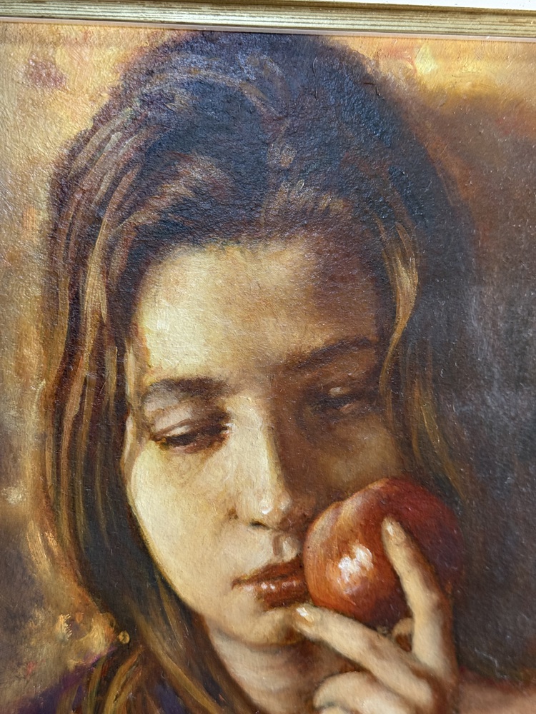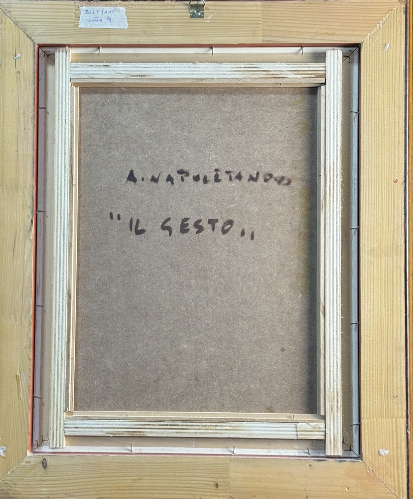 Dipinto olio su pannello, periodo XX secolo, scuola Italiana raffigurante Ritratto di donna da titolo "Il gesto". Dimensioni compreso cornice: 52x62 cm. Dimensioni interno cornice: 30x40 cm. Firmato in basso a destra Antonio Napoletano. Opera in buone condizioni.