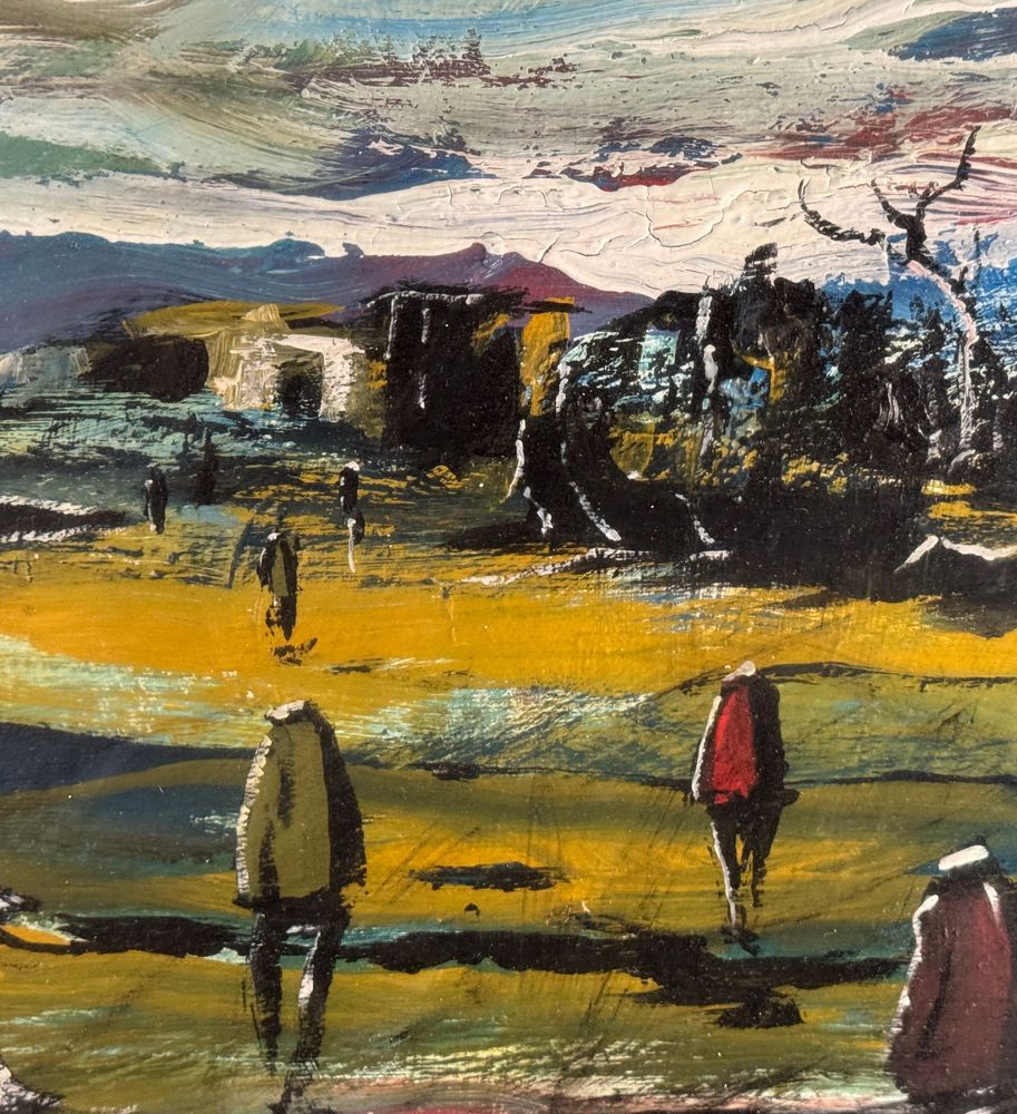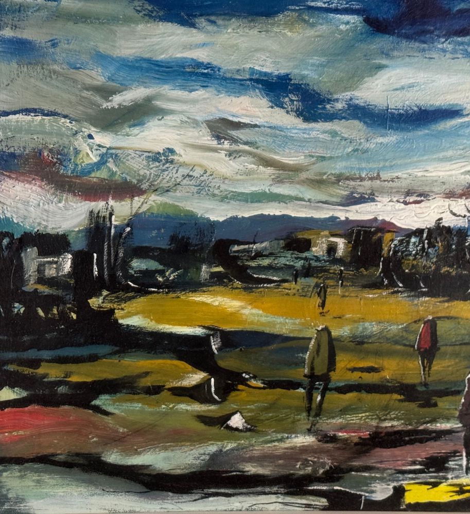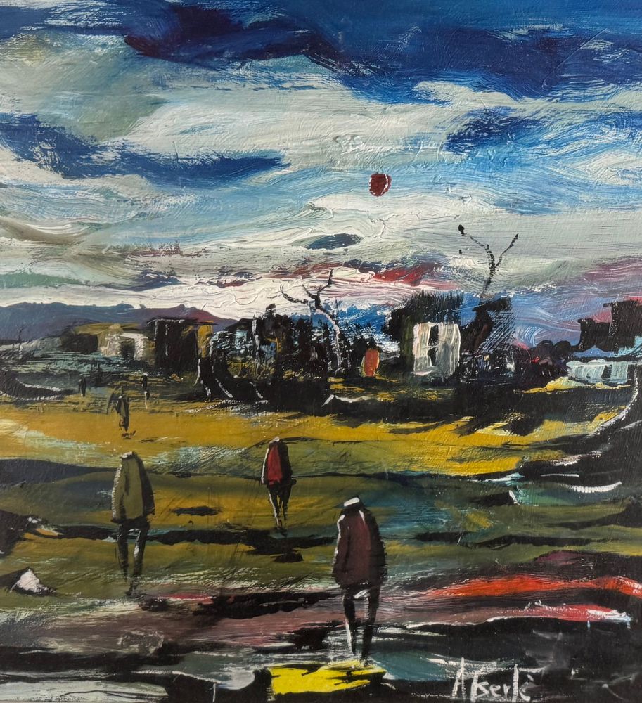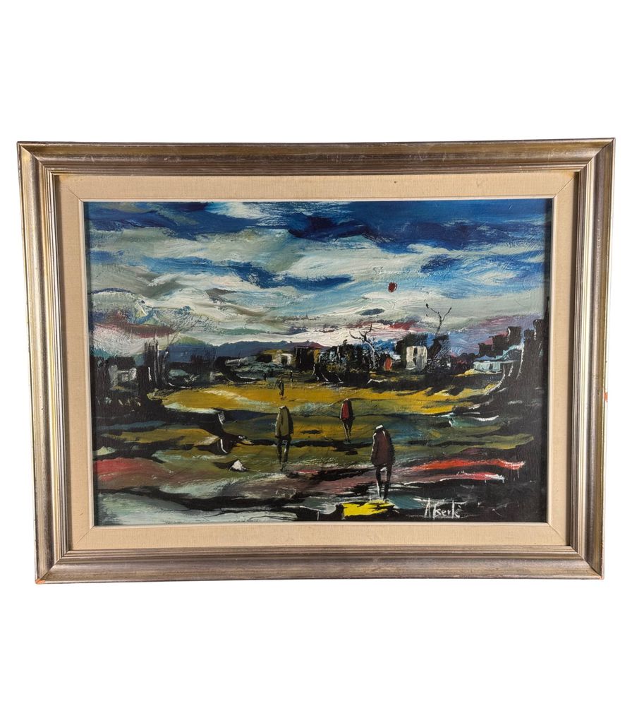 Dipinto olio su tela, periodo XX secolo, scuola Italiana, raffigurante Strada con personaggi. Dimensioni compreso cornice: 64x84 cm. Dimensioni interno cornice: 50x70 cm. Firmato in basso a destra Antonio Bertè. Opera in buone condizioni.
