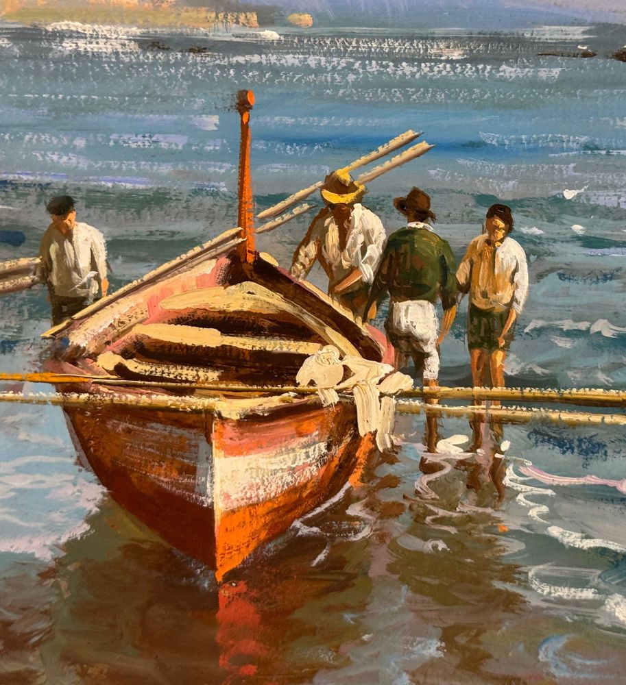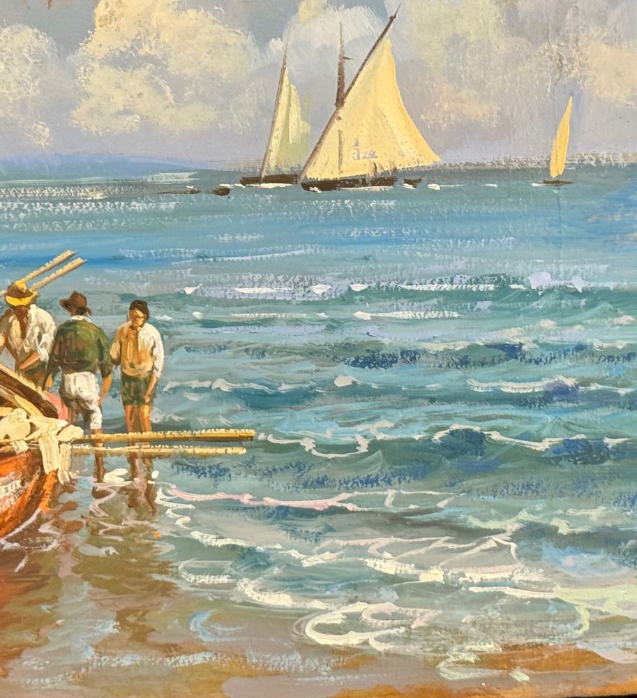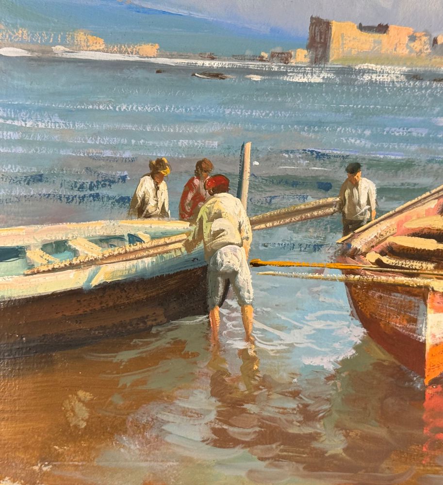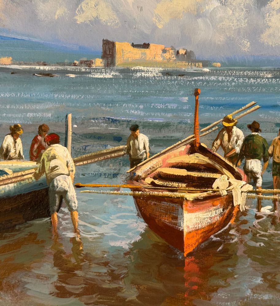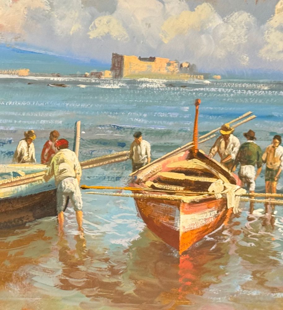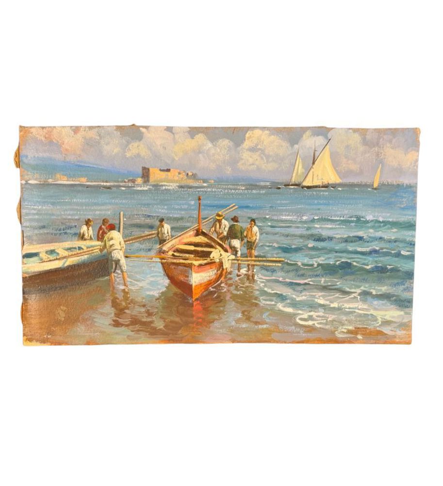 Dipinto olio su cartoncino, periodo XX secolo, scuola Italiana, raffigurante Marina napoletana. Dimensioni: 33x18,5 cm. Artista anonimo Opera in buone condizioni.