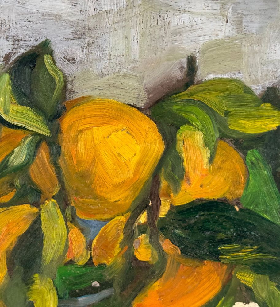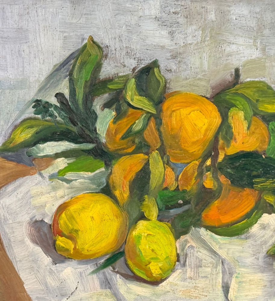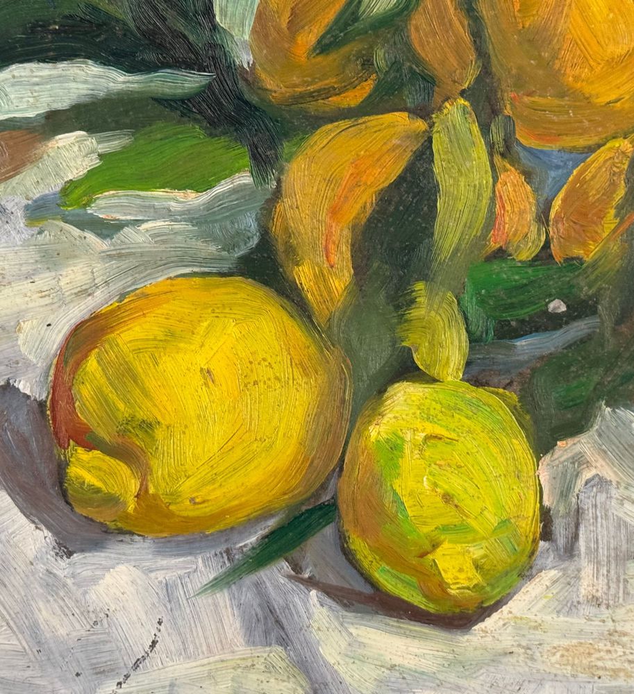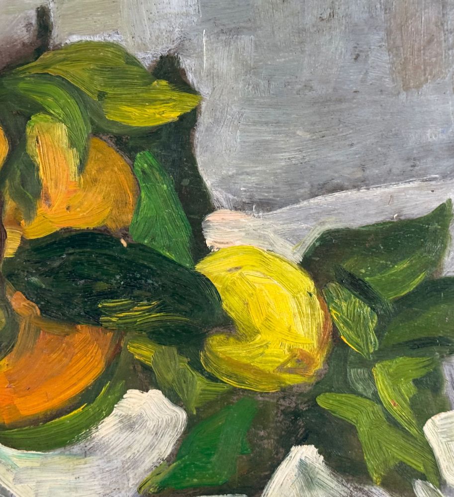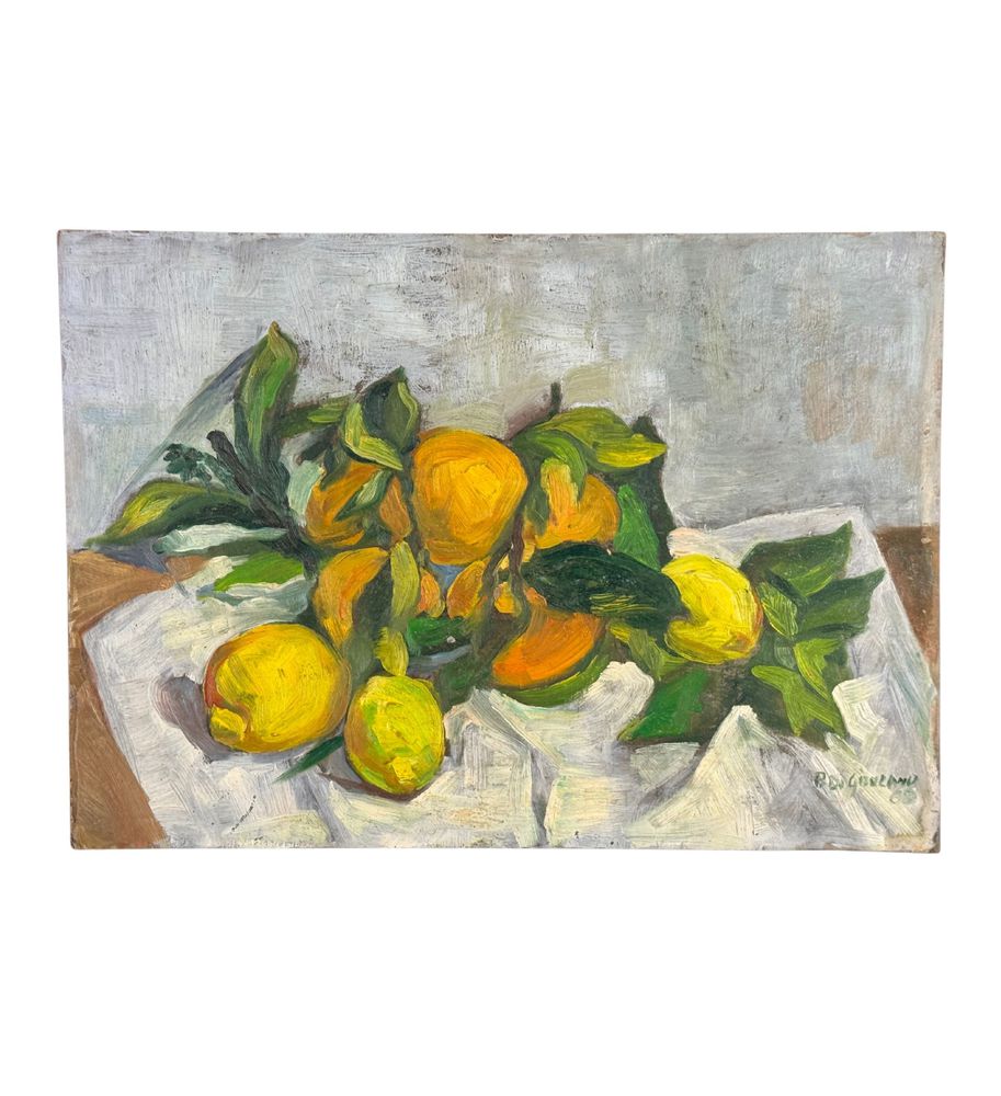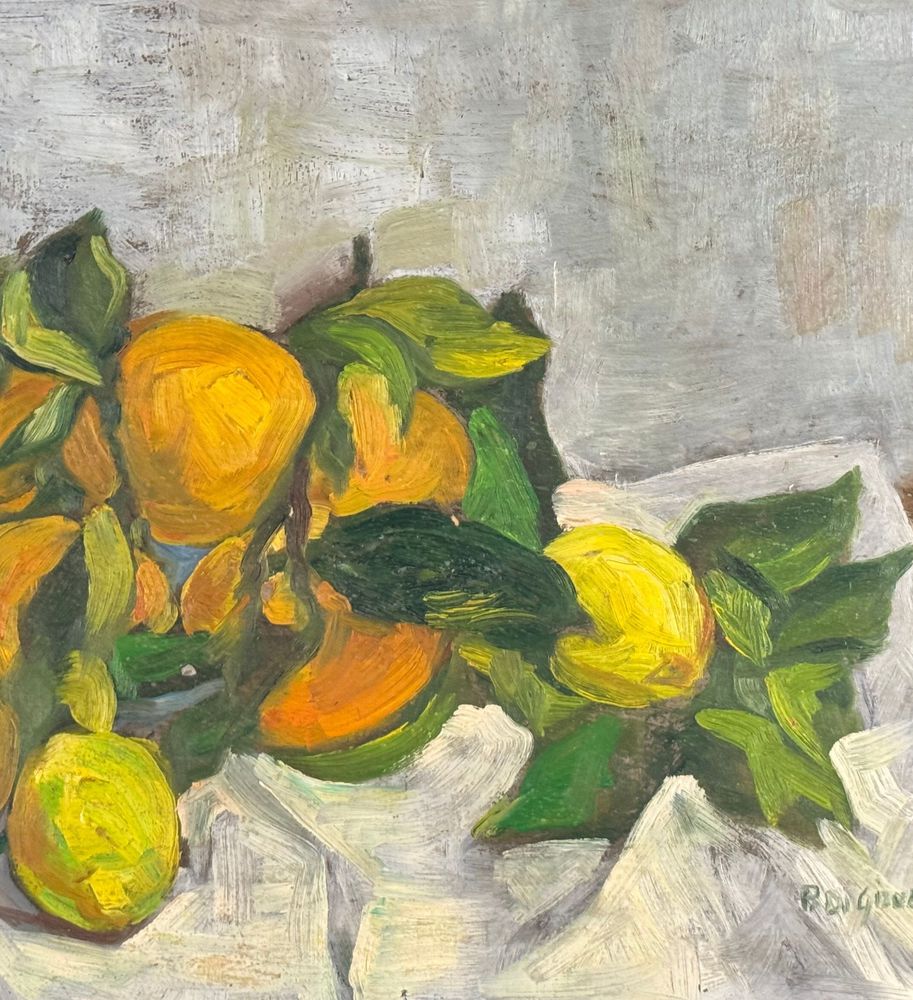 Dipinto olio su pannello, periodo XX secolo, scuola Italiana, raffigurante Natura morta. Dimensioni: 51x36 cm. Firmato in basso a destra artista non identificato. Opera in buone condizioni.