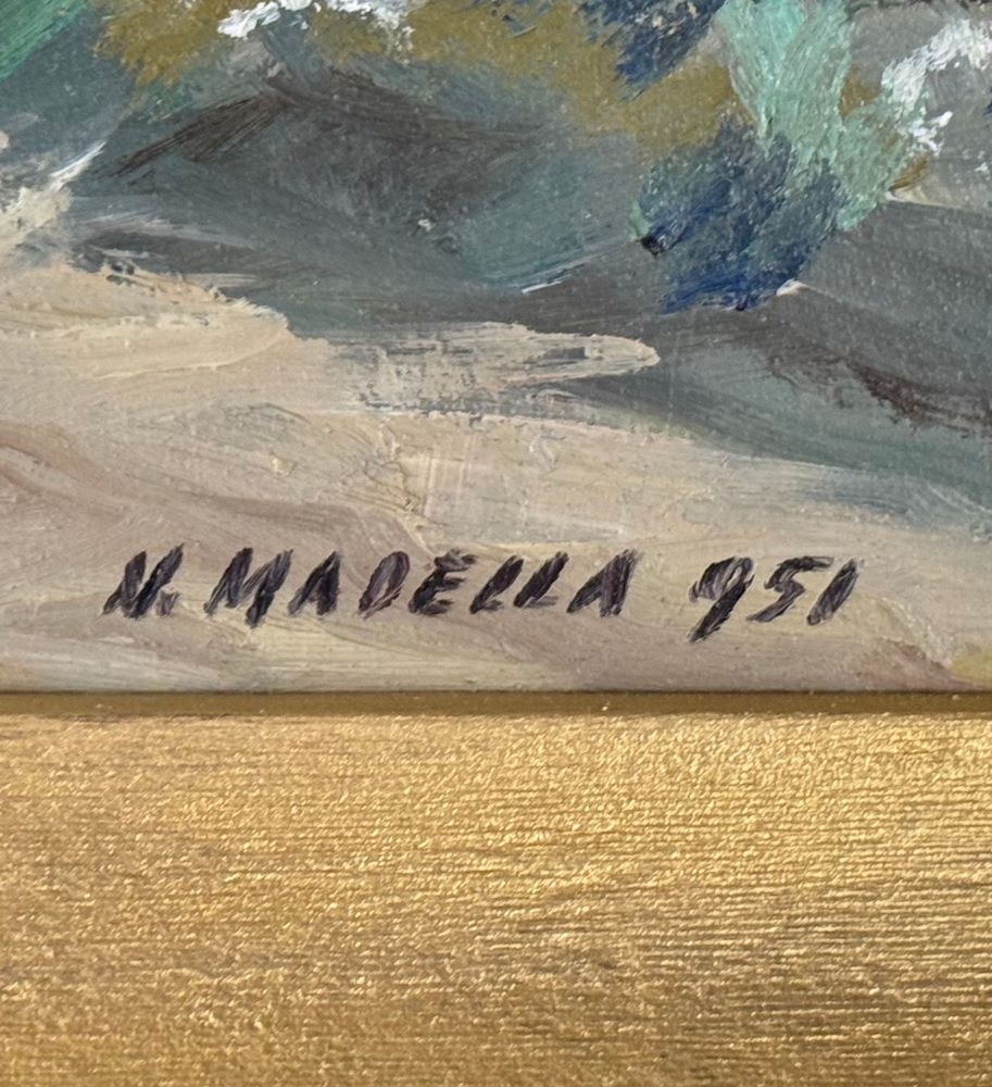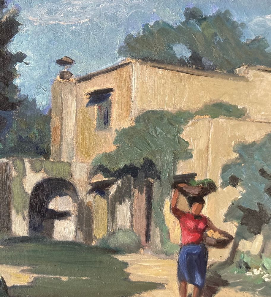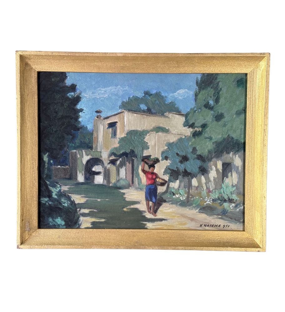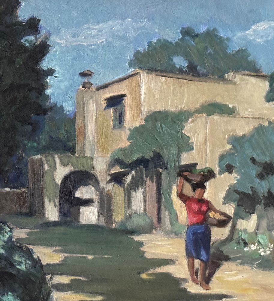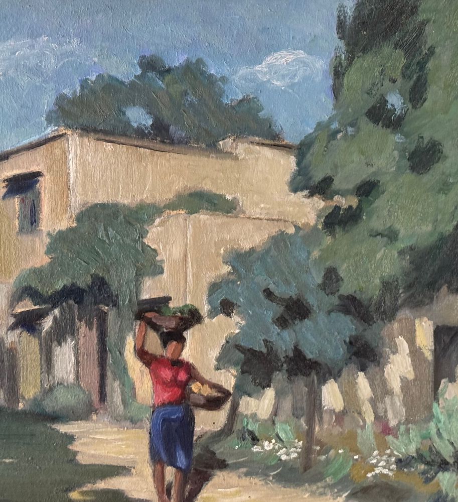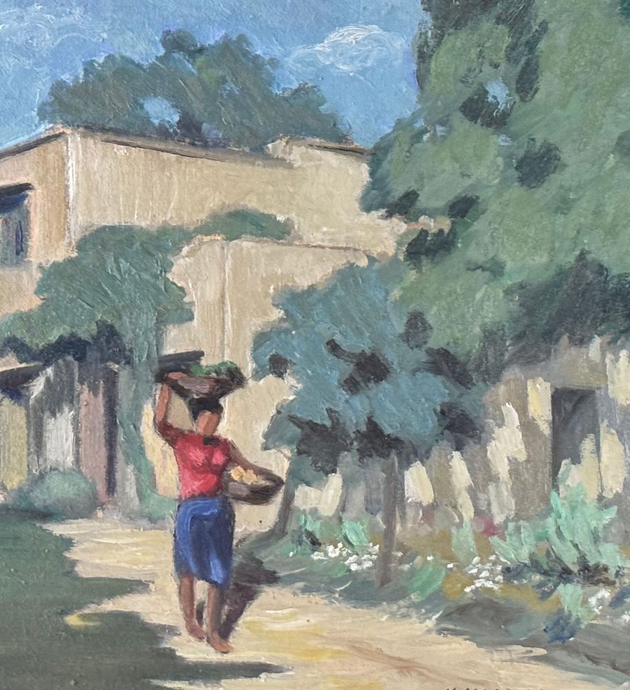 Dipinto olio su pannello, periodo XX secolo, scuola Italiana, raffigurante Strada di campagna. Dimensioni compreso cornice: 55x43,5 cm. Dimensioni interno cornice: 48x36 cm. Firmato in basso a destra artista non identificato. Opera in buone condizioni.