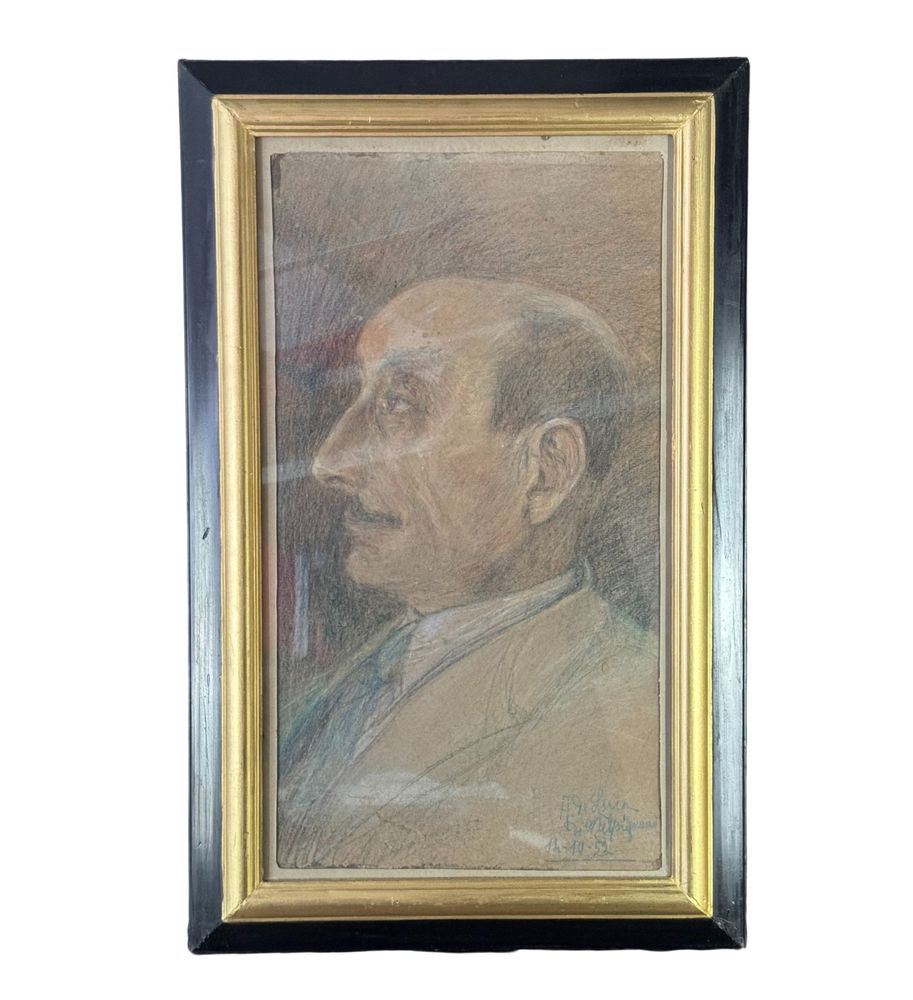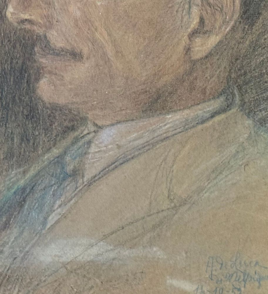 Dipinto pastello su carta, periodo XX secolo, scuola Italiana, raffigurante Ritratto maschile. Dimensioni compreso cornice: 41x64 cm. Dimensioni interno cornice: 27x51 cm. Firmato in basso a destra A.De Luca. Opera in buone condizioni.