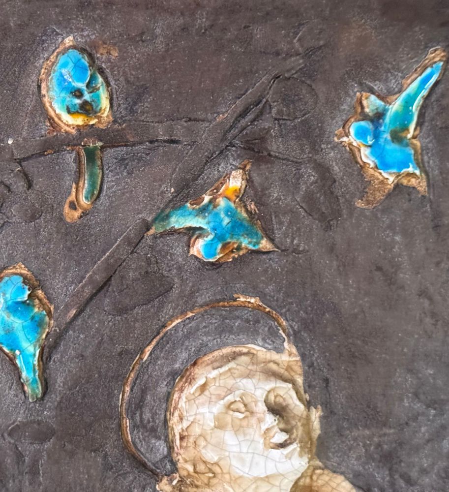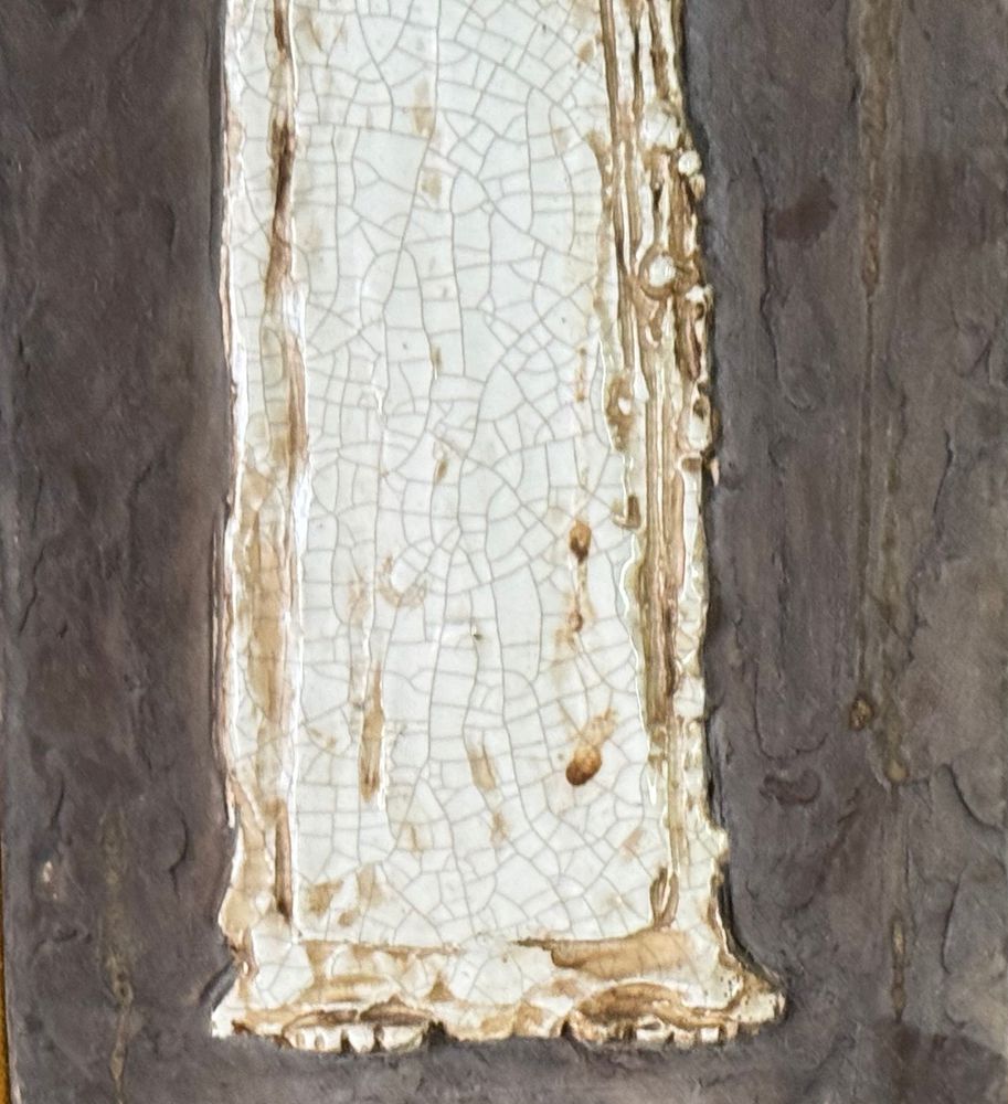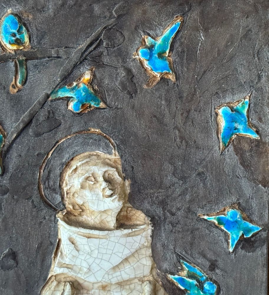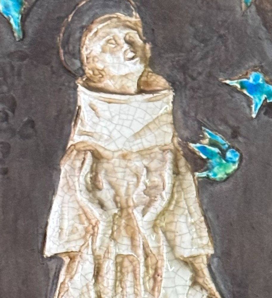 Scultura in ceramica, periodo XX secolo raffigurante Personaggio religioso. Dimensioni compreso: 31x66 cm. Interno: 52x17 cm. Buone condizioni.