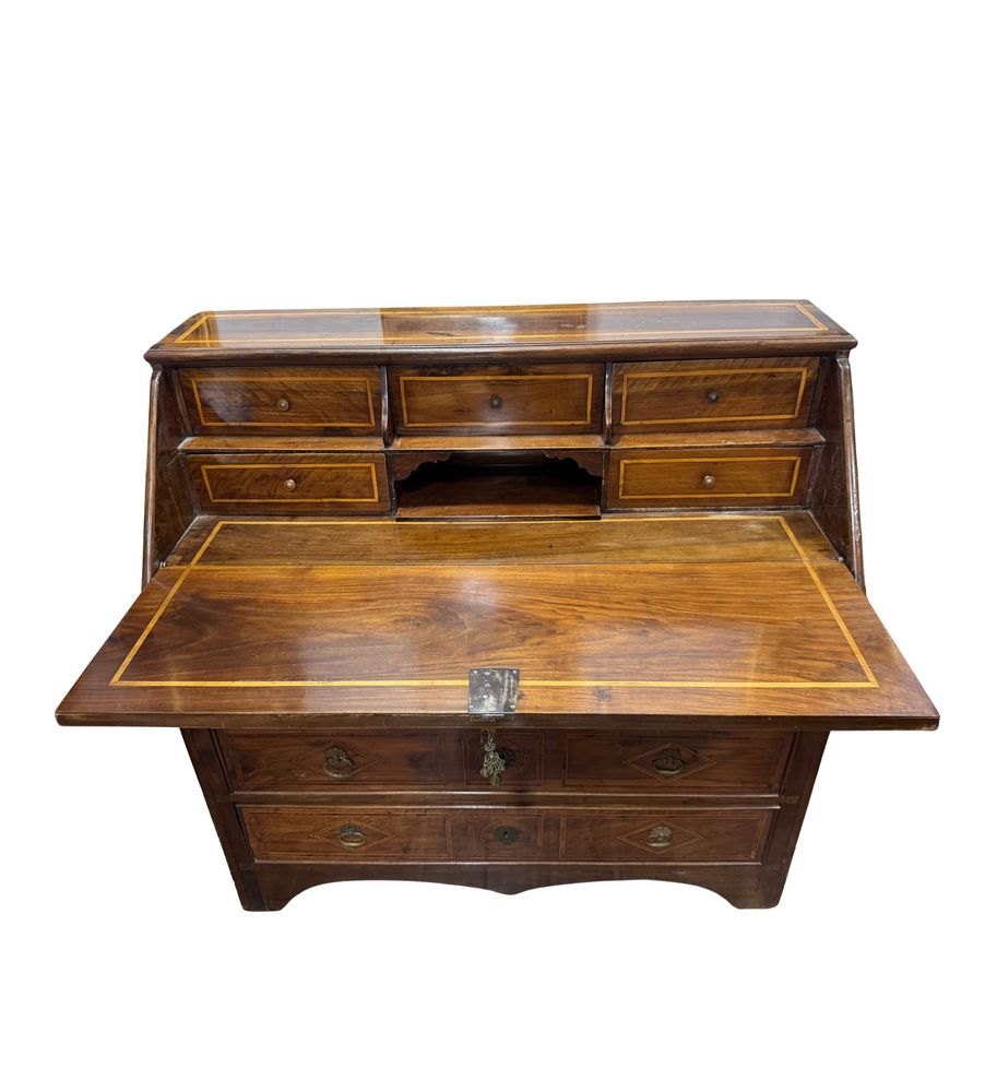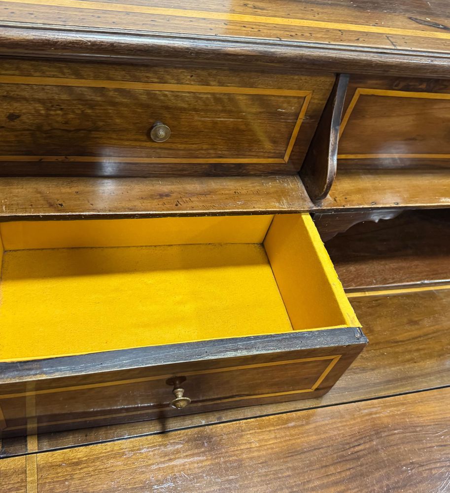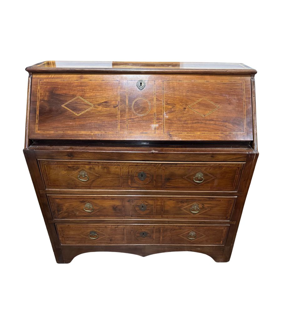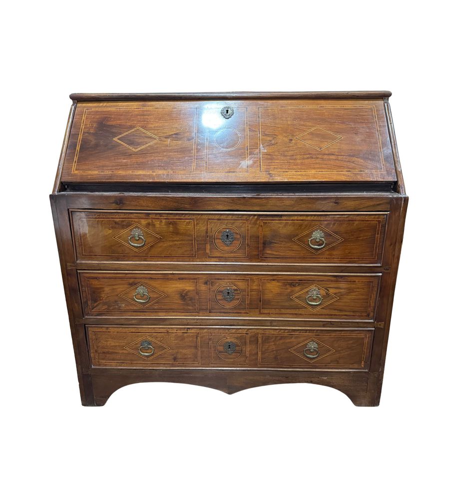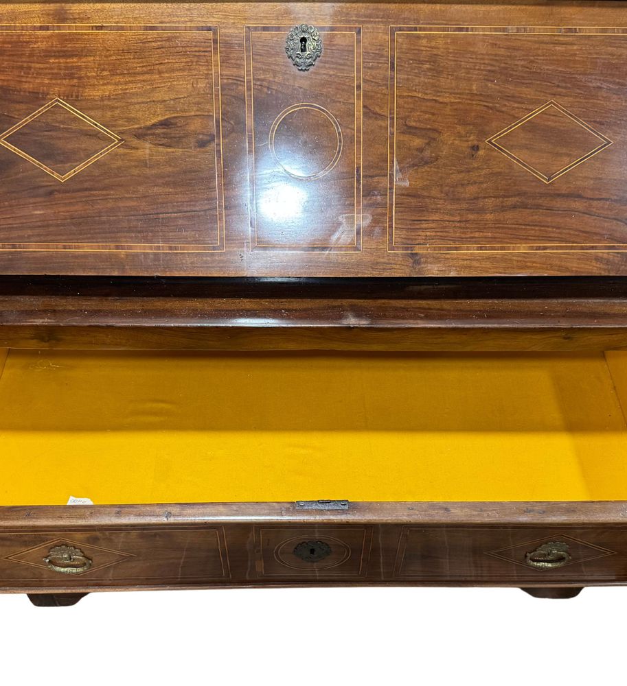 Comò a ribalta a 3 cassetti lastronato, periodo Italia XVIII secolo....