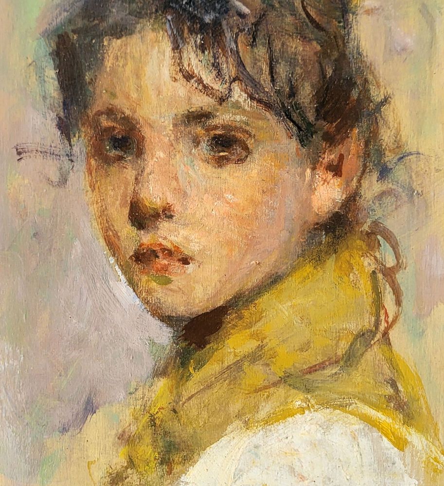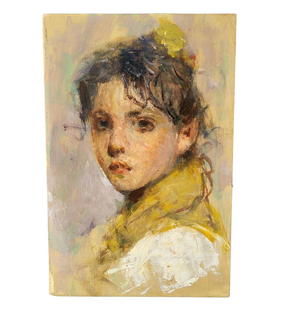 Dipinto olio su tavola, periodo XX secolo scuola Italiana raffigurante Ritratto di donna. Dimensioni: 16x24 cm. Artista anonimo. Opera in buone condizioni.