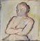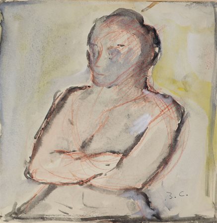Calvani Bruno A braccia conserte, 1969 tecnica mista su cartone, cm. 20x21 siglata in basso a destra, etichetta della Galleria Annunciata di Milano al retro senza cornice