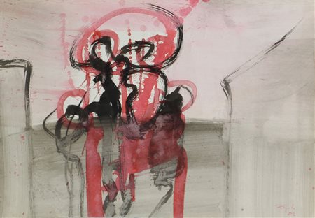 Papola Claudio Senza titolo, 1962 tecnica mista su carta, cm. 25x35 firmata e...