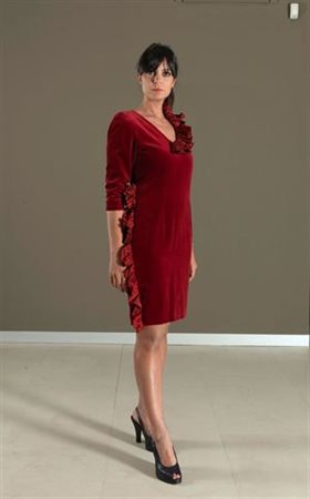 ABITO SARTORIALE Abito in velluto di cotone color bordeaux a manica lunga,...
