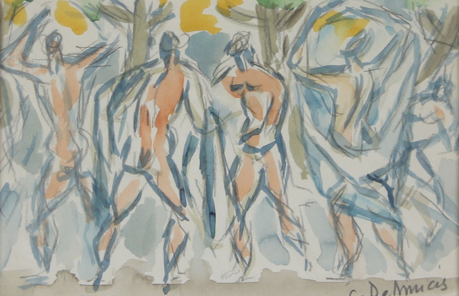 De Amicis Cristoforo Figure al Bagno acquarello su carta, cm. 20x30 firmato in basso a destra, certificato di archiviazione a firma del Dott. Arch. Piero De Amicis su fotografia