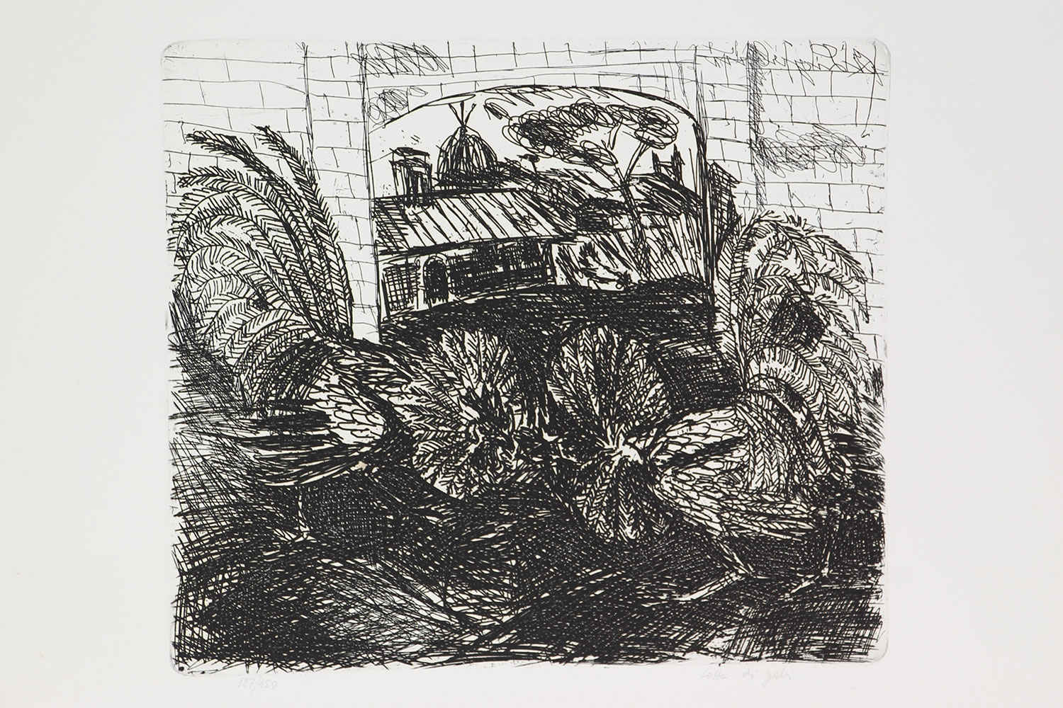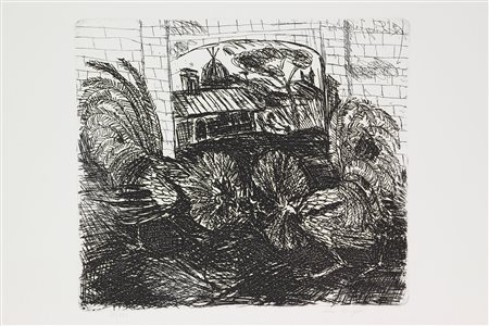 Ligabue Antonio Lotta di Galli, 1977 acquaforte su carta, cm. 29,5x44 (lastra...