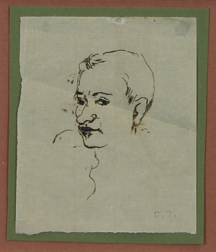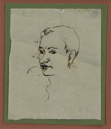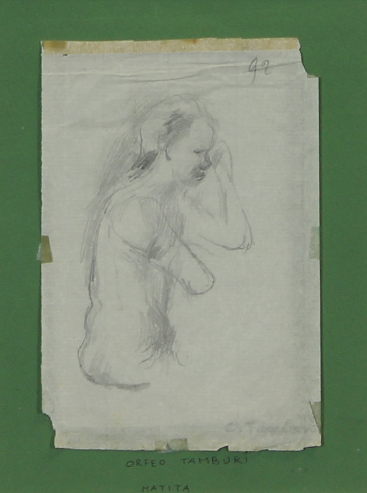 Tamburi Orfeo Volto - Figura lotto di 2 disegni a matita e china su carta, cm. 13x10,5 - cm. 15,5x10,6 il Volto è siglato in basso a destra e la Figura è firmata in basso a destra, certificati di autenticità della Galleria Gioacchini su fotografia