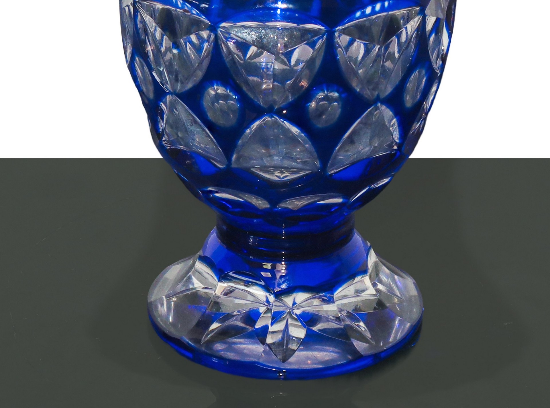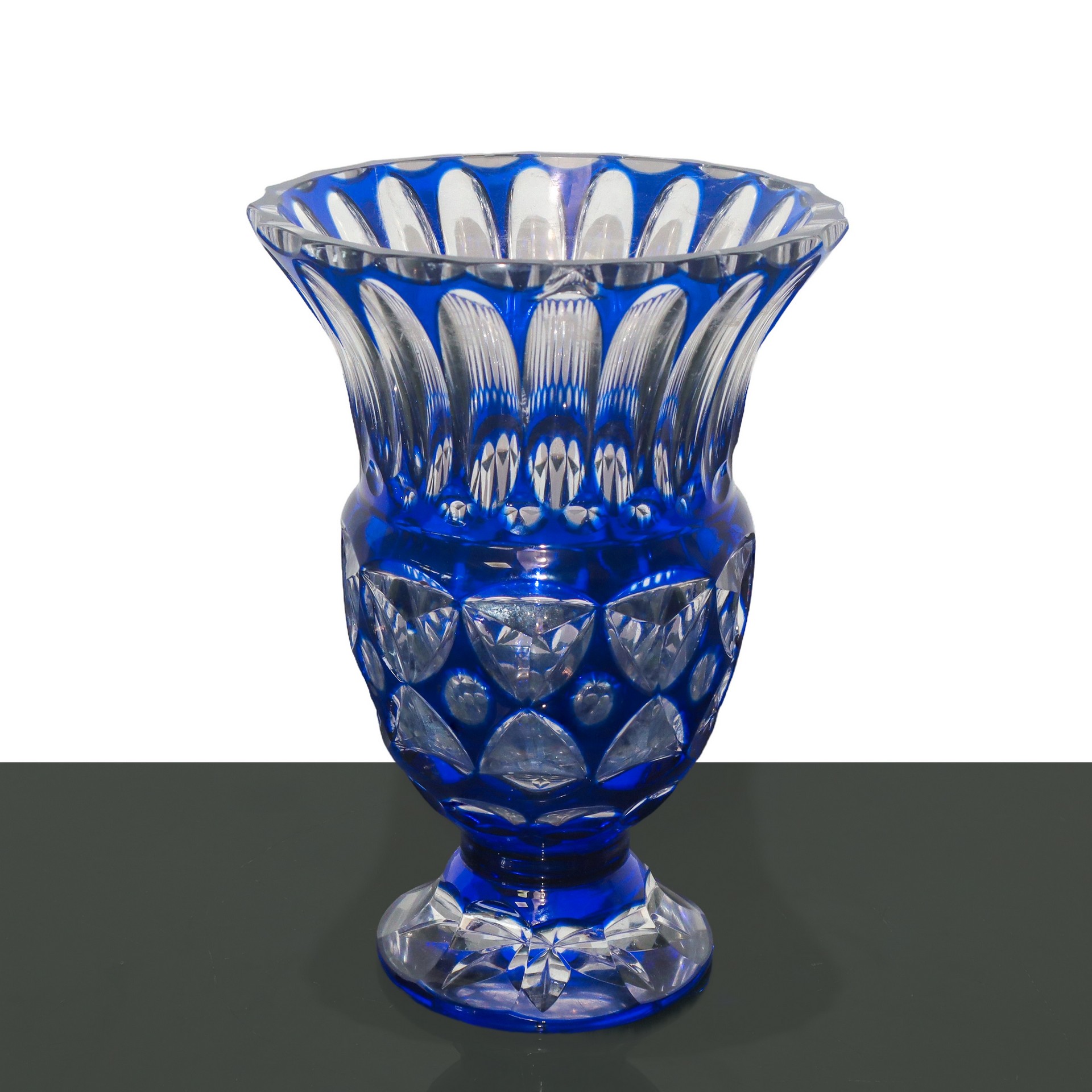 Vaso blu cobalto in cristallo di rocca cm 21X15 Filatura alla bocca. Sbeccatura sull'orlo.