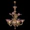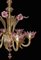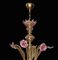 Lampadario in vetro di Murano a 6 luci giallo paglierino con fiori rosa