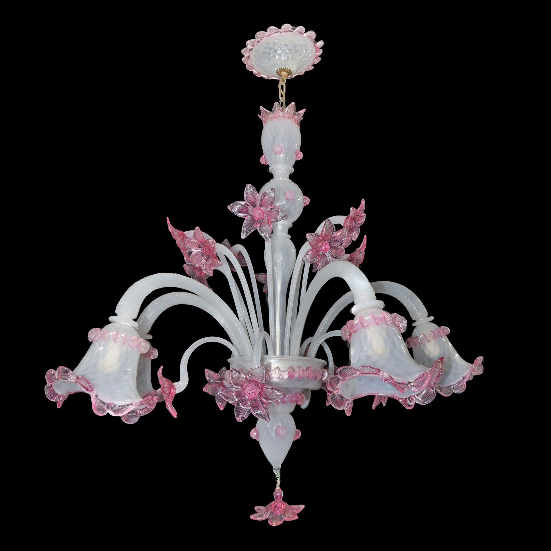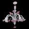 Lampadario in vetro di Murano bianco con dettagli e fiori rosa h cm 93X79