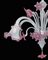 Lampadario in vetro di Murano bianco con dettagli e fiori rosa