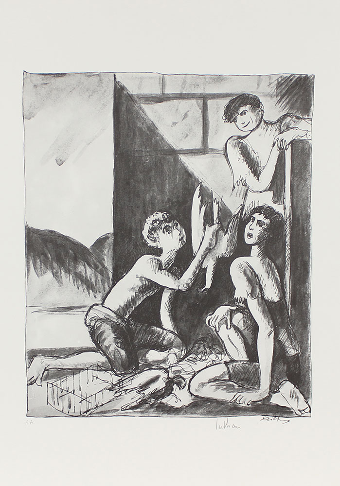 Sciltian Gregorio Tre Giovani litografia su carta Fabriano, cm. 70x50, es....