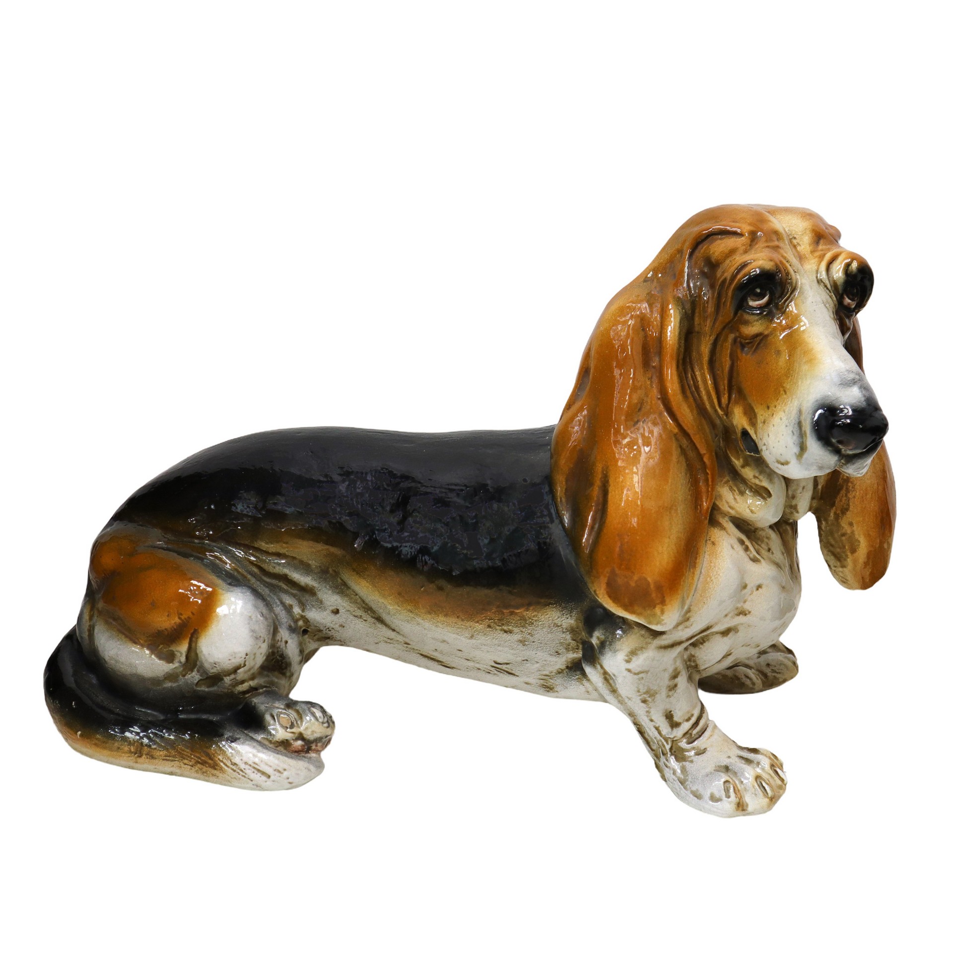 Bassotto in maiolica H cm 72x44 Marchio Made in Italy sotto una zampa anterioreMarchio Made in Italy sotto una zampa anteriore