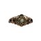 ANELLO in oro basso titolo. Montatura traforata e incisa a motivi floreali arricchito da un piccolo elemento in pasta vitrea circondato da sette schegge di brillanti Italia XX secolo