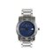 GIRARD -PERREGAUX, OROLOGIO MODELLO LADY 7000 in acciaio movimento al quarzo , cassa tonda con lunetta graduata , quadrante blu con indici applicati e numeri romani . Bracciale originale in acciaio con chiusura deployante. Fondello inciso con dicitura G-P numero A- 182 water resistant Svizzera anni 90 cm 8
