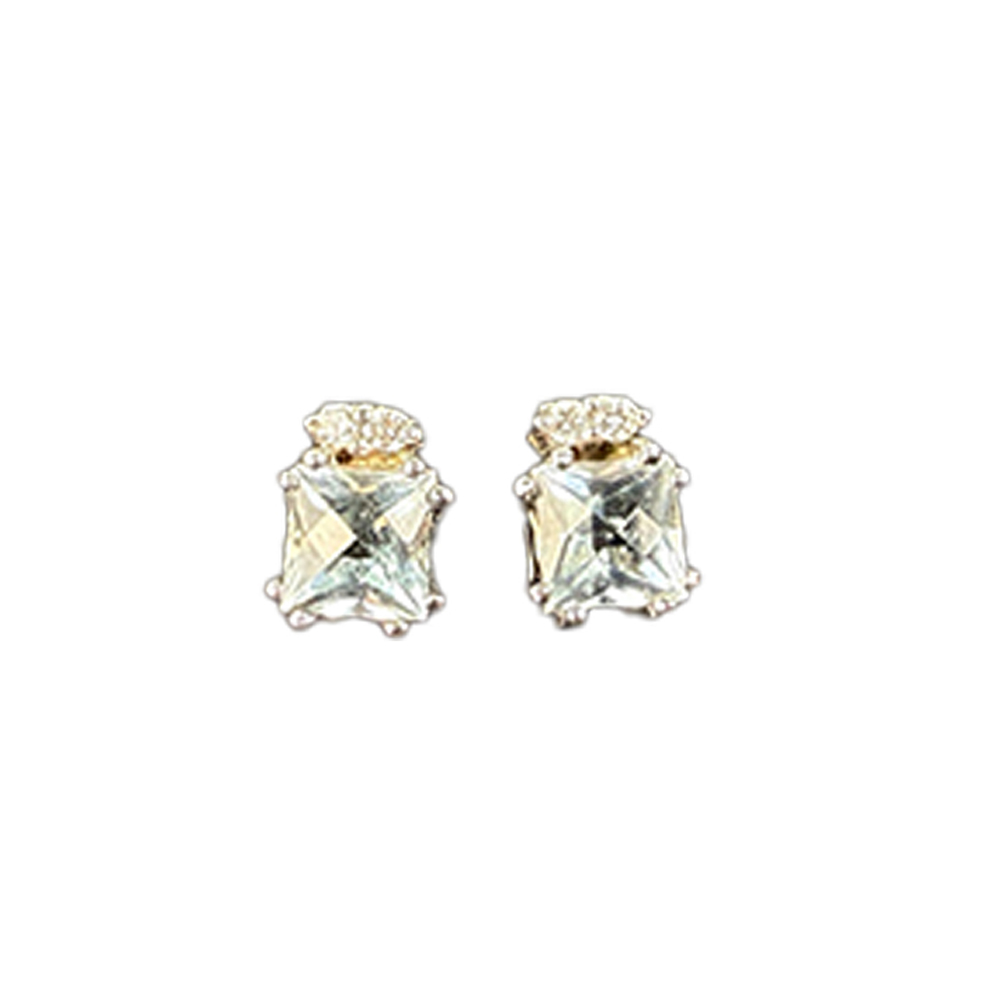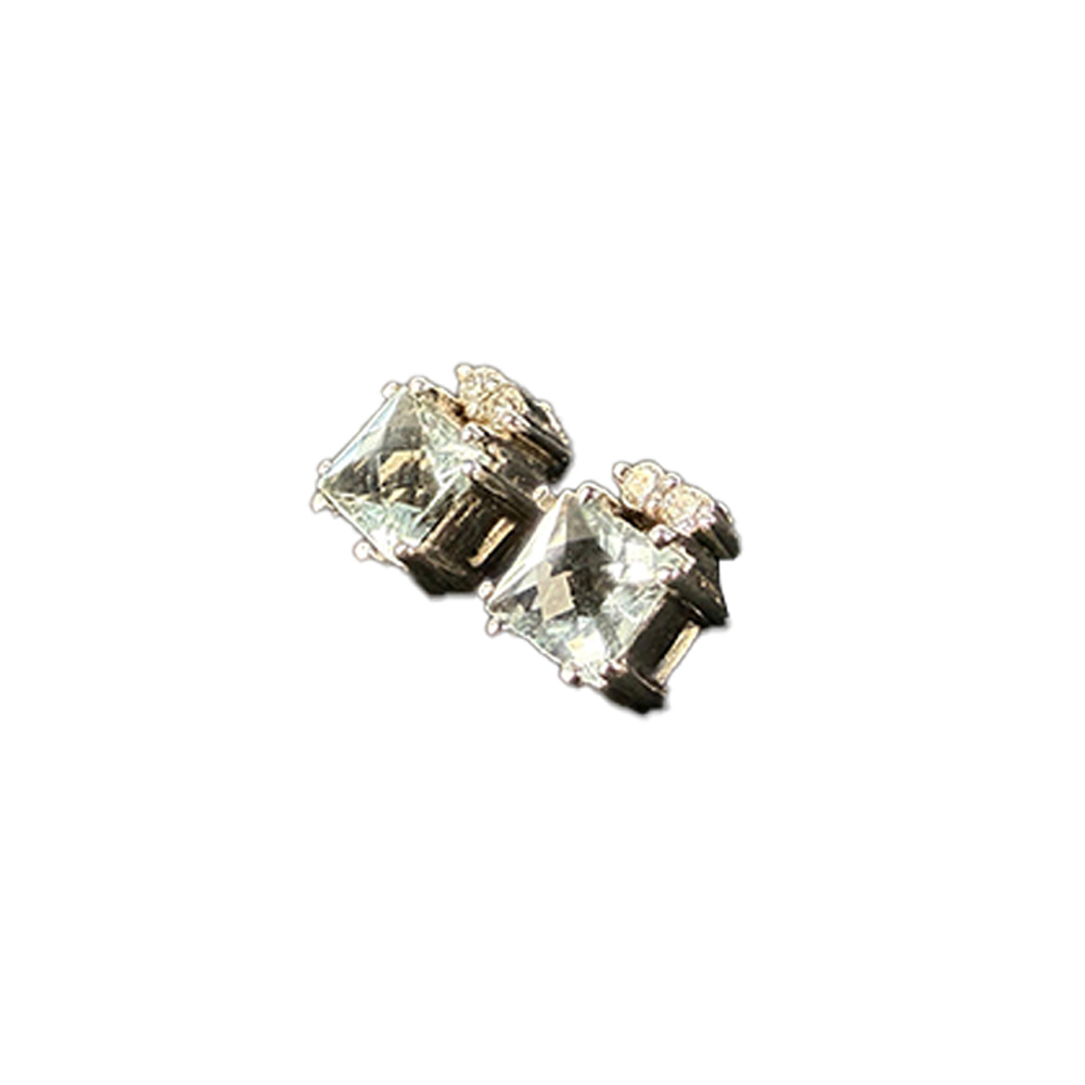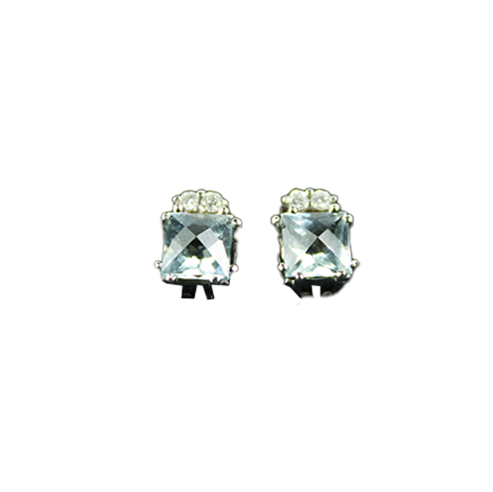 COPPIA ORECCHINI in oro bianco 750 con acquamarina e due diamantini, epoca contemporanea ITALIA 3,90 g cm 1,2