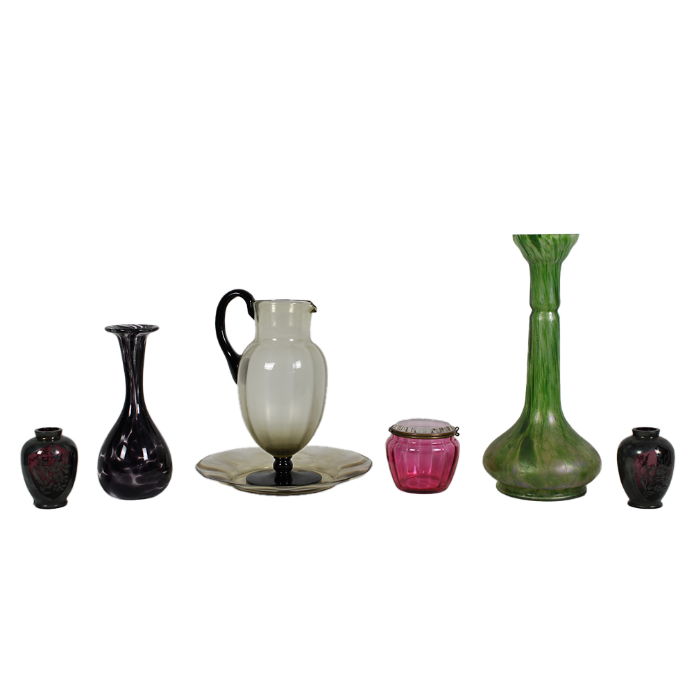 LOTTO COMPOSTO DA 6 oggetti in vetro di cui, uno con piccola sbeccatura nel bordo diverse maestranze primi 900 misure varie