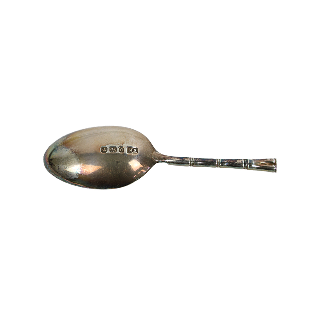 SET COMPOSTO DA 6 cucchiaini ed 1 pinza in argento dentro custodia in pelle Inghilterra 1896 cofanetto cm 20 x 15