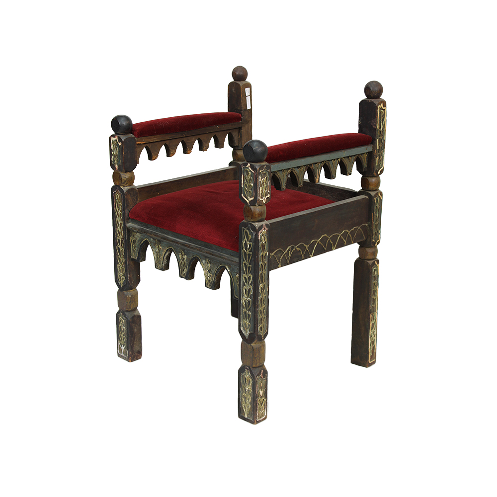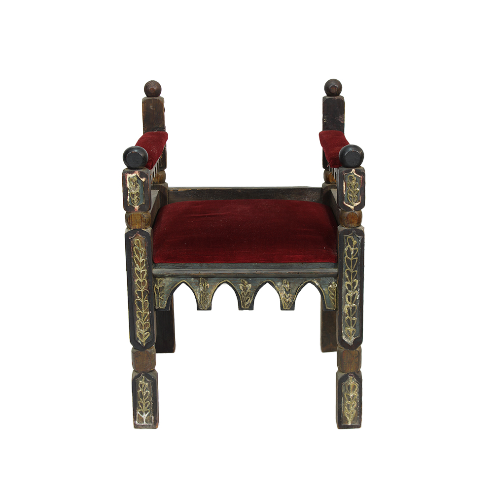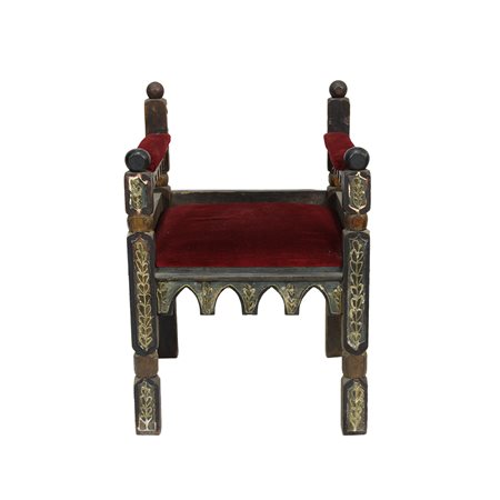 POLTRONA A FALDISTORIO in legno di castagno con decori in pastiglia ,tracce di laccatura Sicilia XIX secolo h cm 80 x 57 x 48